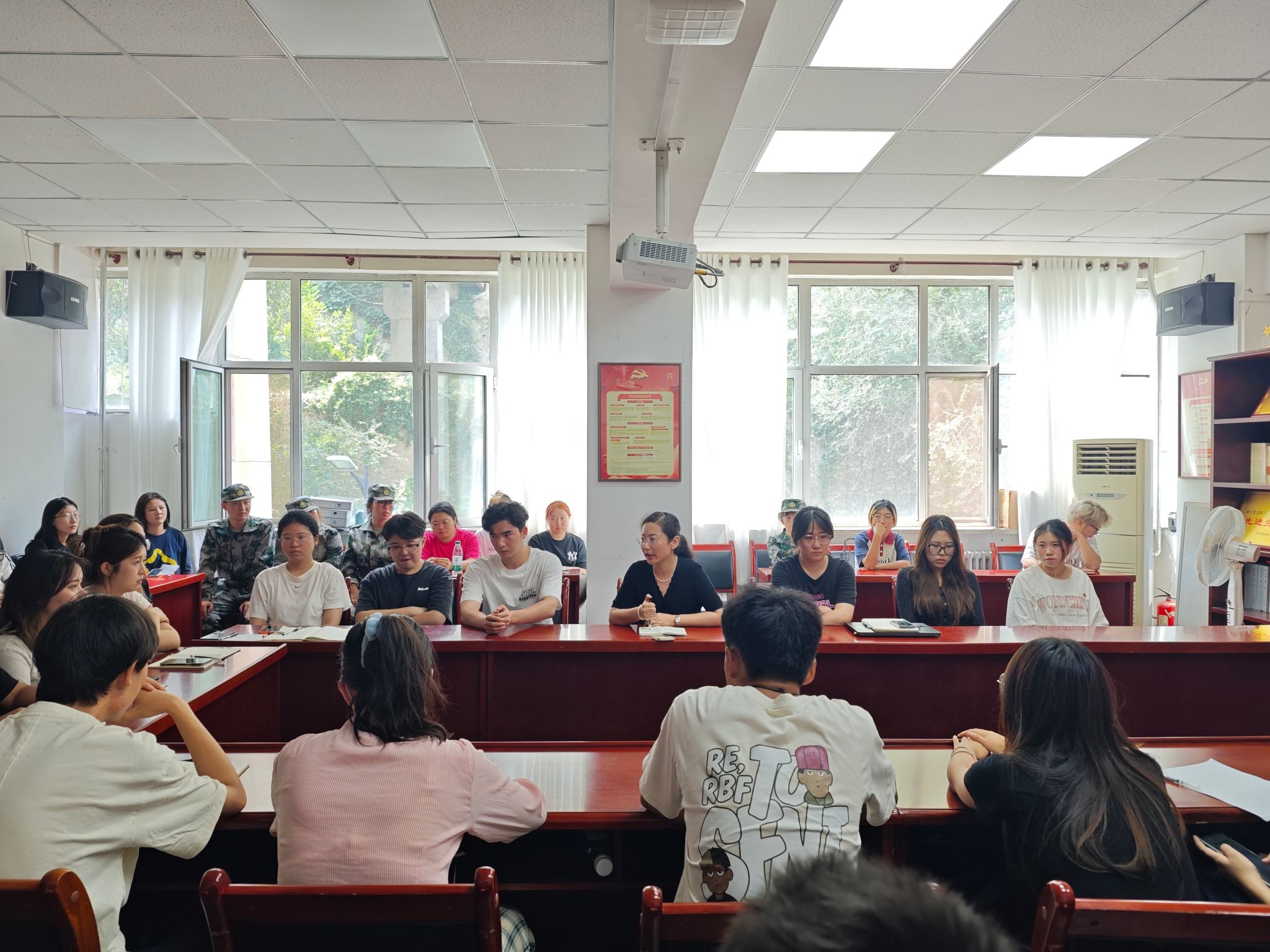 為完善教育教學體系,暢通訴求渠道,學生干部門圍繞教學管理、學生管理、校園活動、校園網絡、后勤等方面積極發言,提出了許多寶貴的意見建議,老師們認真傾聽、詳細記錄,并逐一做出回應。馮炳超從教學管理、課程設置和教室環境等方面進行答疑。鐵英秀強調各學生干部要積極佩戴黨員徽章、團徽,遵守宿舍管理規定,杜絕晚歸、夜不歸宿等違紀情況,充分發揮模范帶頭作用。徐海翔表示學院會高度重視同學們的意見建議,學院層面的問題及時采取措施加以改進,學校層面的問題積極向相關部門反映。會議最后,王媛媛向學生干部提出了工作紀律要求,并對本學期工作進行了安排。