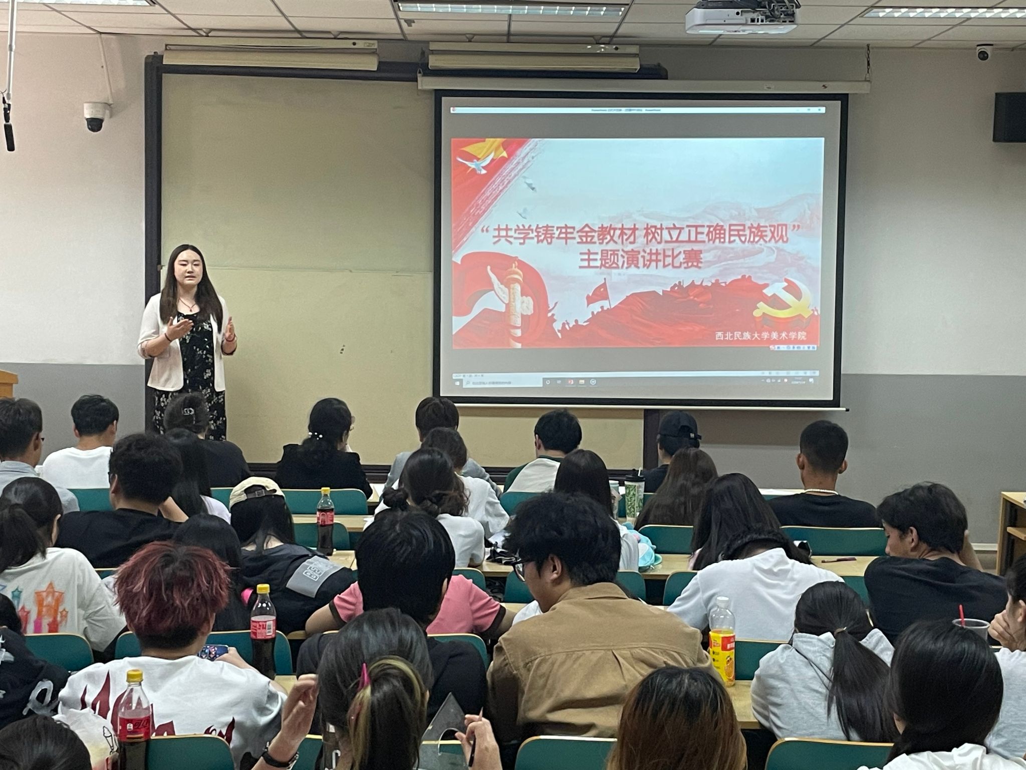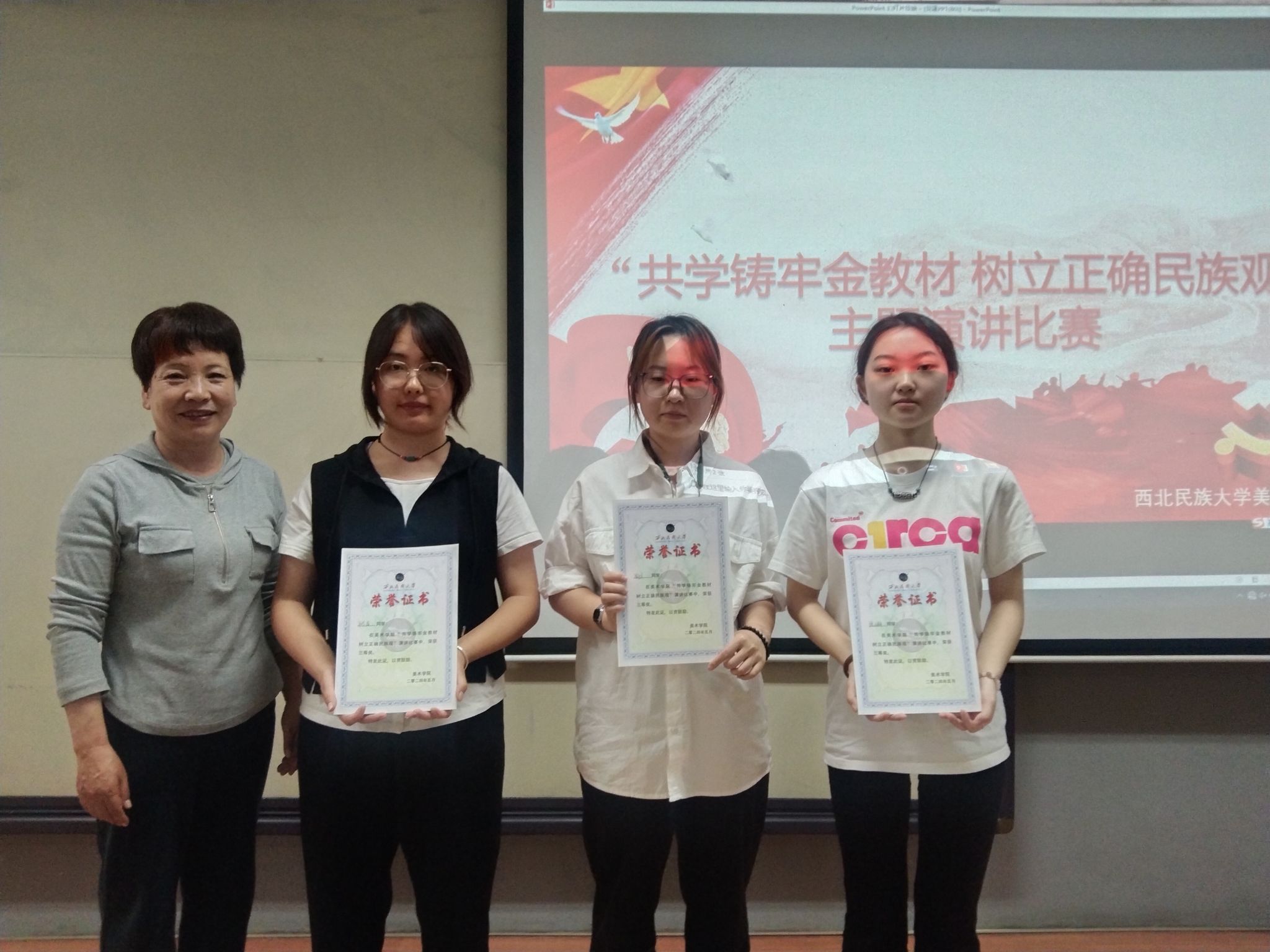 為進一步引導學生深入學習《中華民族共同體概論》教材,牢固樹立正確的民族觀,美術學院于5月14日在文津樓208教室舉辦“共學鑄牢金教材,樹立正確民族觀”主題演講比賽。學院黨委副書記、副院長鐵英秀、團委書記王媛媛以及團委、學生會主要成員擔任比賽評委。