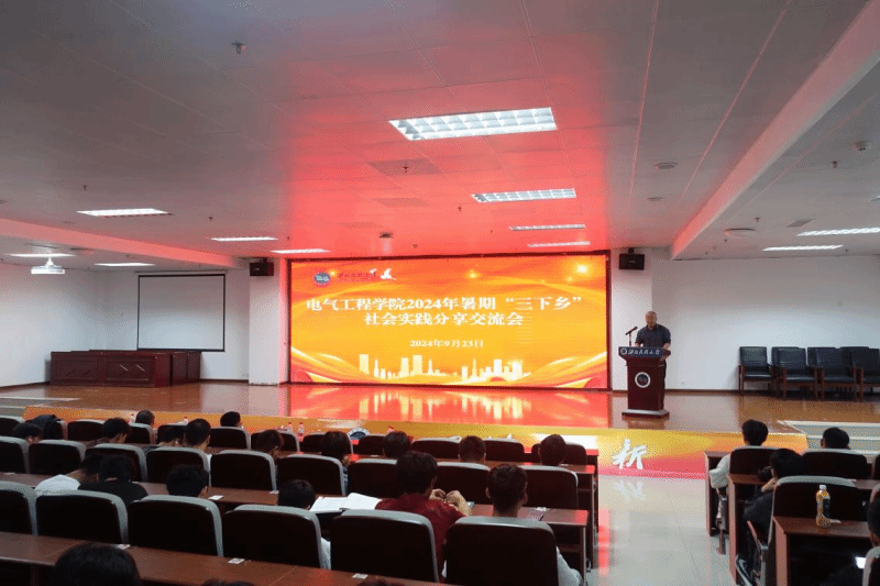 2024年9月23日,電氣工程學院在榆中校區就業大廳舉辦新生入學教育之2024年暑期“三下鄉”社會實踐成果分享交流會。學院黨委書記王振國、院長馬安仁,副院長高明亮、團委書記王小麗、社會實踐學生代表及2024級部分新生300余人參加。