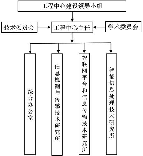 本工程中心依托西北民族大學建設,學校成立工程中心建設領導小組。工程中心建設領導小組由省發改委、學校主管領導及相關部門和共建單位負責人組成,主要協調學校相關資源,檢查督促和指導工程中心按照建設計劃任務完成各項建設工作。工程中心實行工程中心主任負責制,具體負責和實施工程中心的各項建設工作。下設1個綜合辦公室和3個研究所(信息檢測與傳感技術研究所、智聯網平臺和信息傳輸技術研究所、智能信息處理技術研究所)。成立工程中心技術委員會和學術委員會負責審議工程中心的目標、任務和研究方向、審議工程中心的重大學術活動、年度工作、審批開放研究課題等工作。
