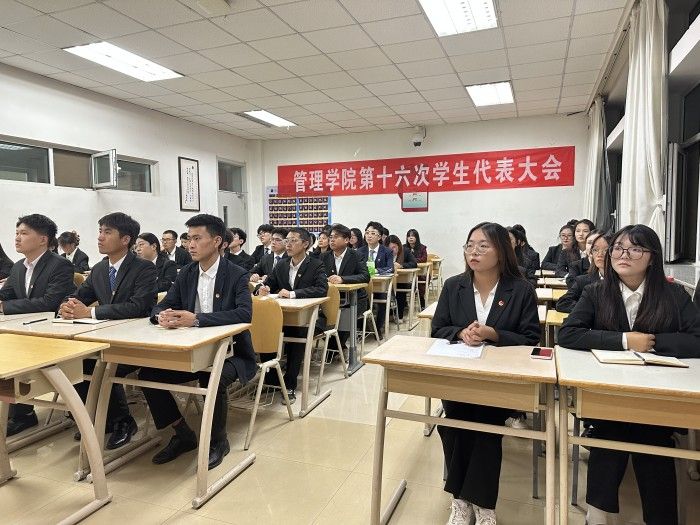 9月19日,管理學(xué)院在致善樓511室召開(kāi)第十六次學(xué)生代表大會(huì)。管理學(xué)院黨委書(shū)記向黨出席會(huì)議,第十五屆團(tuán)委學(xué)生會(huì)兼職副書(shū)記、學(xué)生會(huì)主席團(tuán)以及學(xué)院40名學(xué)生代表參加會(huì)議,會(huì)議由周自高主持。