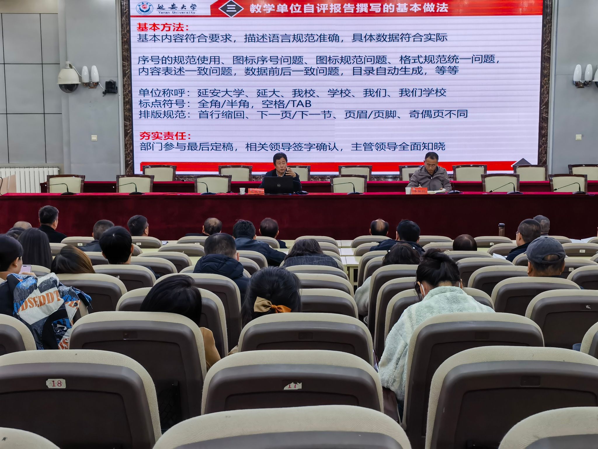 11月12日,管理學院聯合教務處、教學質量監控與評估處、法學院等六家單位在西北新村校區文津樓二樓學術報告廳舉行了“本科教育教學審核評估啟動儀式暨審核評估輔導培訓會”,管理學院全體教職工參加,會議邀請延安大學教學質量監控與評估處處長王文東教授作了專題培訓。
