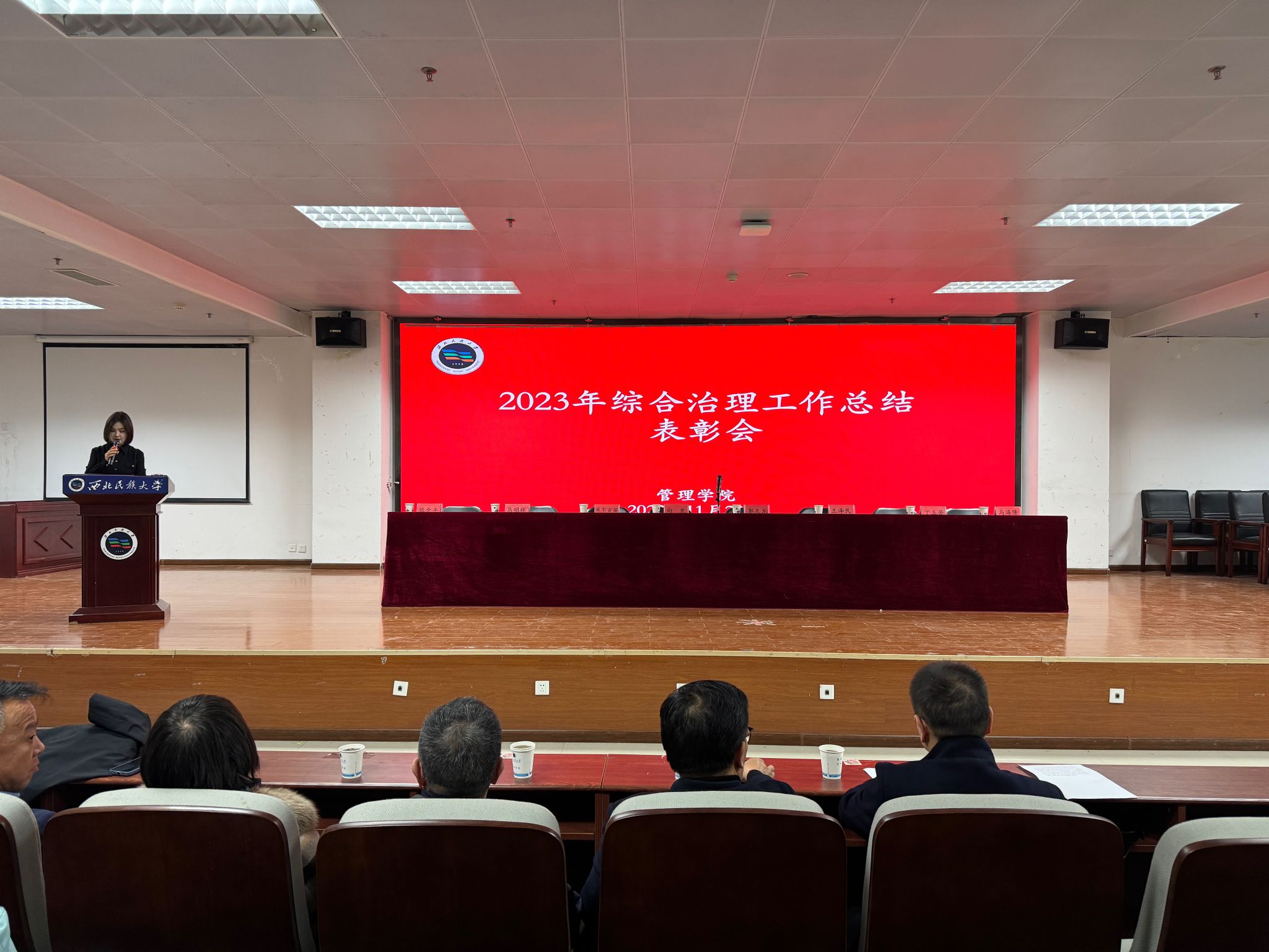 11月23日,管理學院在榆中校區就業大廳召開2023年綜合治理工作總結表彰會。學校保衛工作部部長郭天龍,管理學院領導班子、政治輔導員、班主任、學生代表200余人參加會議。會議由學院黨委副書記米爾古麗主持。