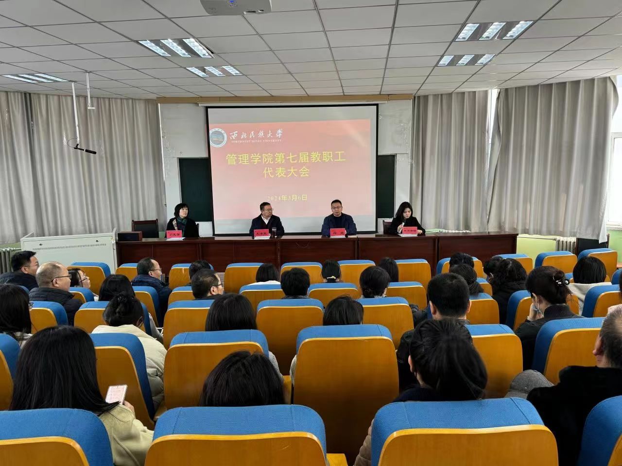 人勤春來早,奮進正當時。3月6日,管理學院在西北新村校區召開第七屆教職工代表大會,學院教職工代表、學生代表齊聚一堂,參與學院民主管理,共議事業發展大計。會議由學院黨委副書記、工會主席米爾古麗主持。