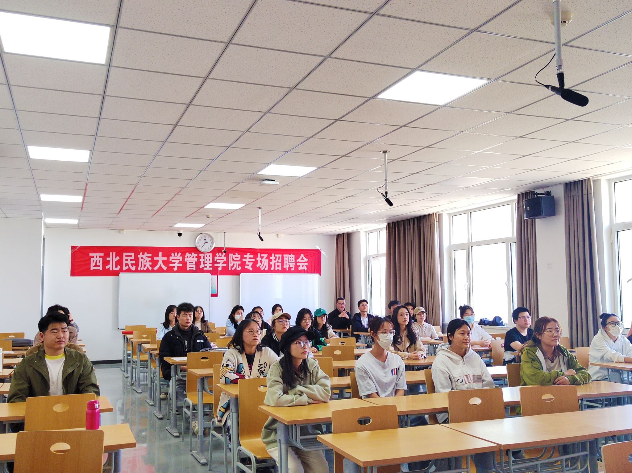 為增強“請進來”訪企拓崗促就業效果,3月22日管理學院邀請敦煌文旅集團有限公司在榆中校區博雅樓404舉辦專場招聘會。敦煌文旅集團黨建人事部總經理王強,管理學院黨委副書記、副院長丁玉芳教授,管理學院旅游管理系主任鄒品佳博士出席,旅游管理、工商管理、航空服務藝術與管理等專業的50余名畢業生和大三學生參加。