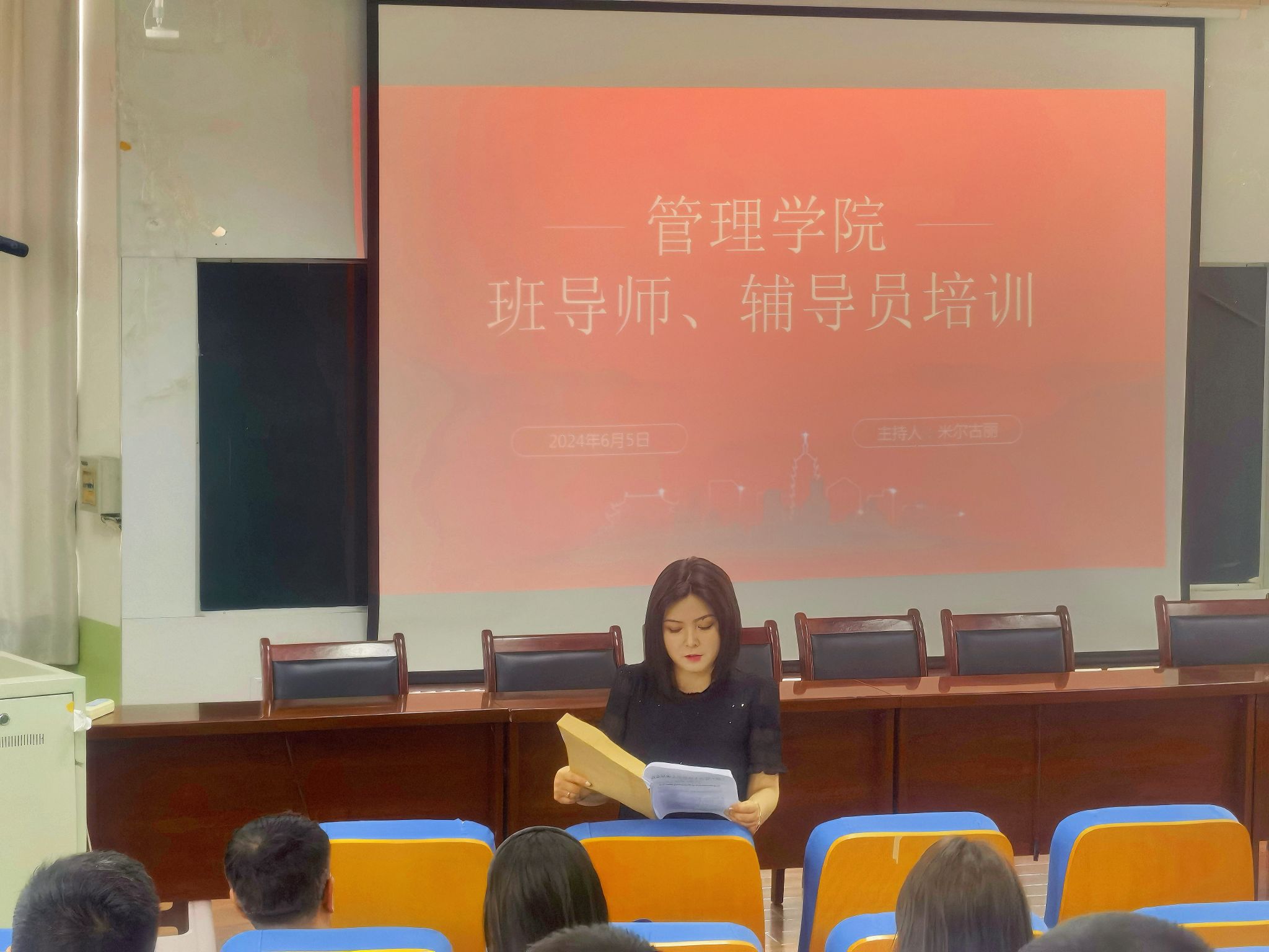 6月5日下午,管理學院在西北新村校區醫學部2樓會議室舉辦本學期第3次班導師、輔導員業務培訓會。黨委書記向黨出席,全體班導師、輔導員參加。會議由米爾古麗副書記主持。