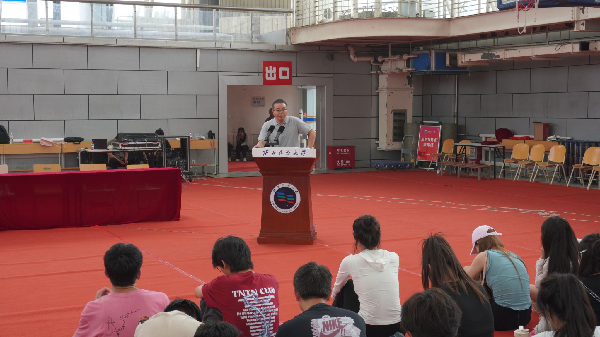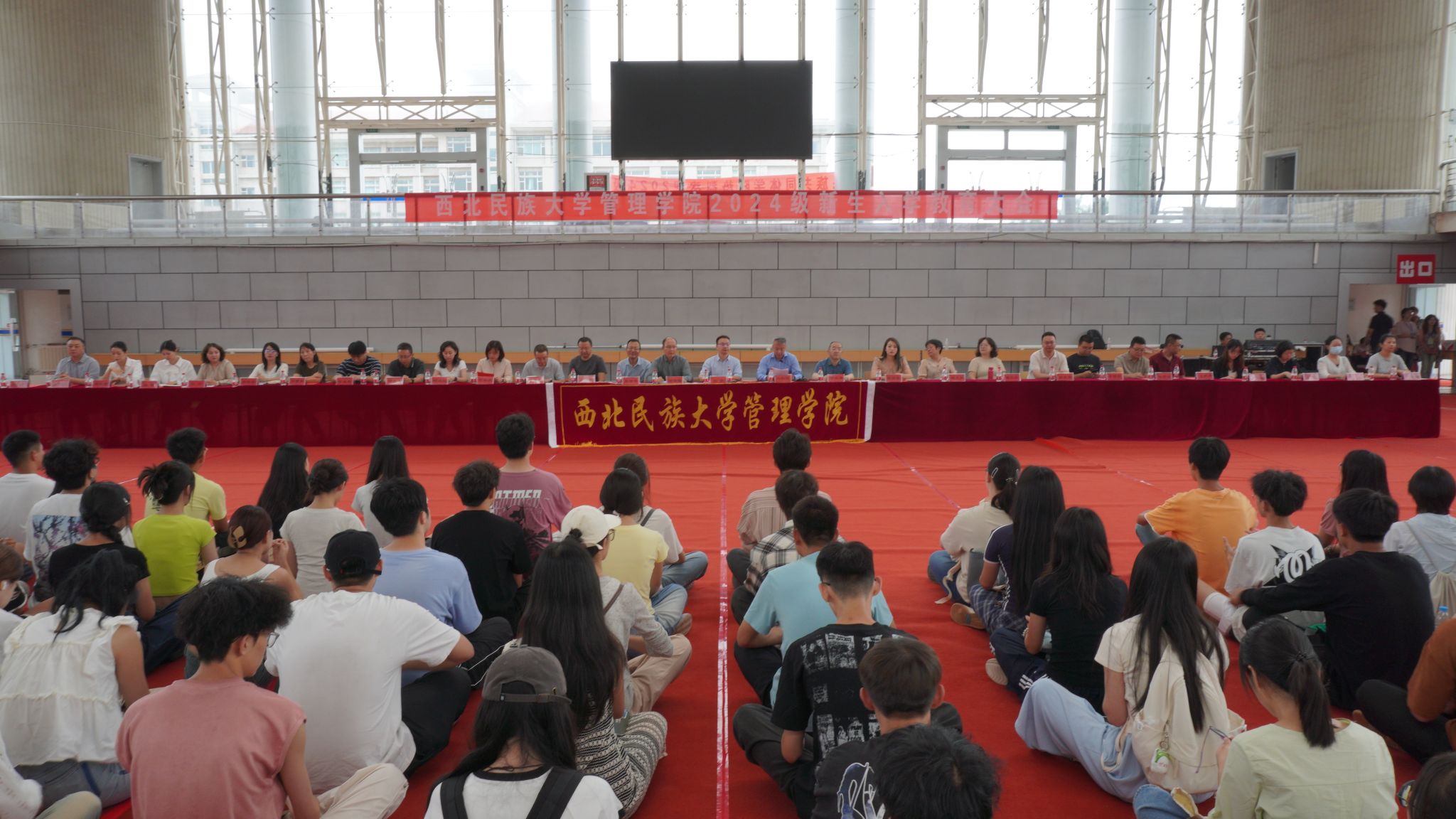 8月31日,管理學院在榆中校區籃排館召開2024級新生入學教育大會,學院黨政領導班子、各系主任、各業務辦公室干部、輔導員、新生班導師、北京廣慧金通有限公司駐校老師和2024級全體新生參加。大會由管理學院副院長馬明輝主持。