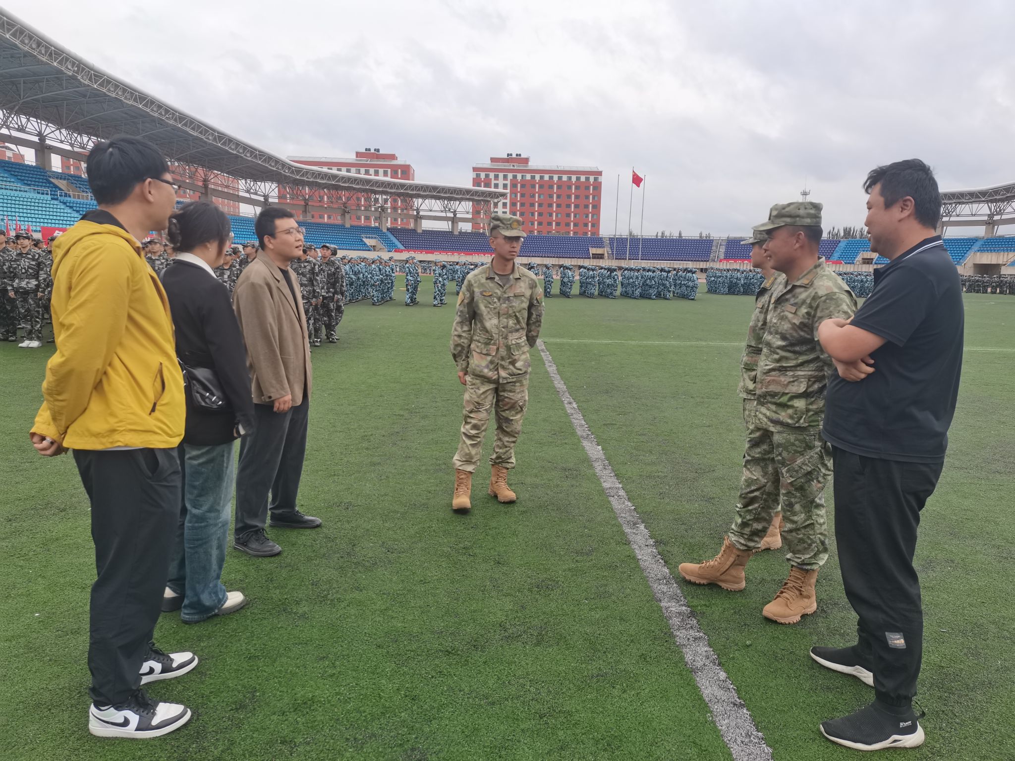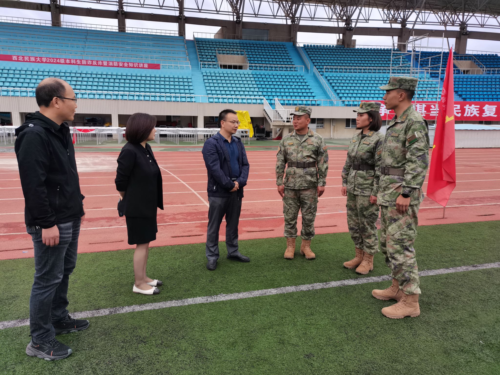 為保障軍訓工作安全有序進行,更好了解新生軍訓成效,鼓舞軍訓士氣,9月4日以來,管理學院負責人向黨、馬明輝、米爾古麗、謝宗棠和班導師、輔導員先后走入民康田徑運動場,走訪看望承訓部隊教官和參訓的2024級全體新生。