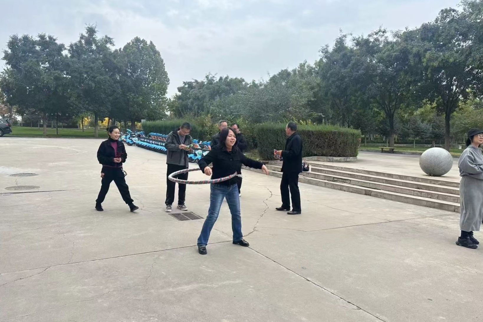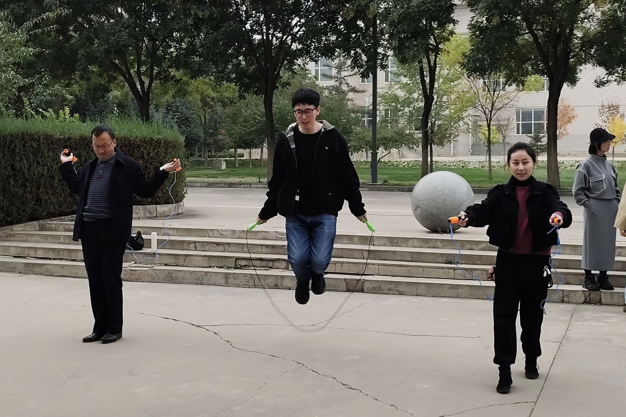 早晨8:30,教職員工們準時來到致善樓下,分組進行跳繩、轉呼啦圈、踢毽子等戶外趣味體育活動。大家在歡聲笑語中展示出色的身體素質、非凡的運動技巧和團隊協作能力,在放松狀態下促進同事間的情感交流,增進彼此之間的了解和友誼。