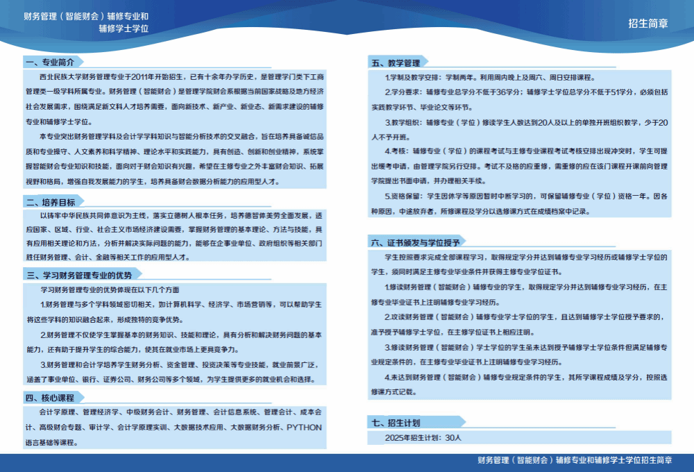 歡迎有意向的同學報考管理學院財務管理(智能財會)輔修專業,更好提升自己的專業素養和專業能力,更好實現人生夢想。