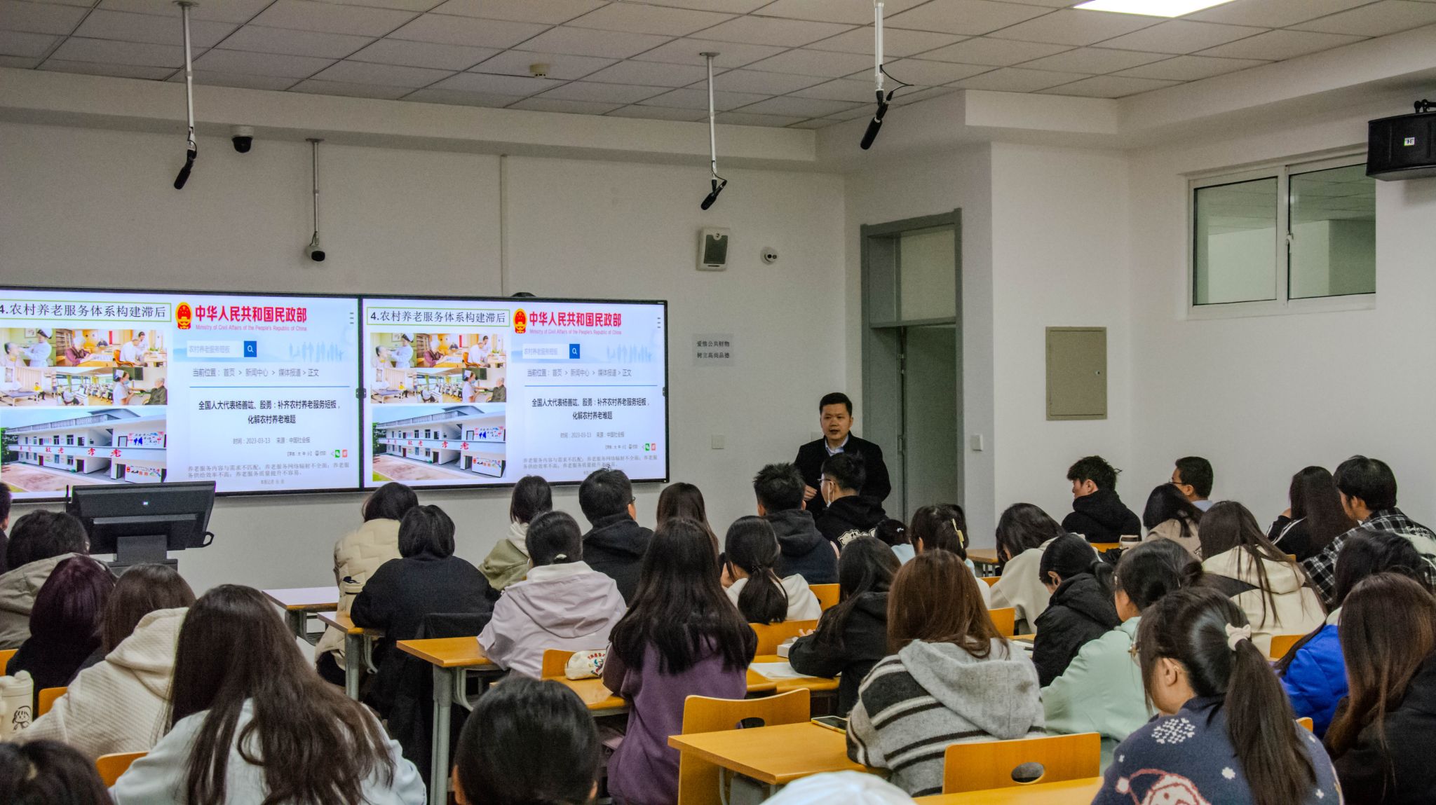 李長遠教授從農村互助養老自主治理的實現基礎及其局限、統合治理的嵌入、農村互助養老治理的優化進路與實踐闡釋、縱向協同推進機制、橫向協調聯動機制、基層黨建引領、剛柔相濟的治理工具、社會組織嵌入——激活互助養老的內生動力結論與討論等方面深入講解,并解讀農村互助養老政策。整場講座內容豐富新穎,現場互動氛圍活躍。