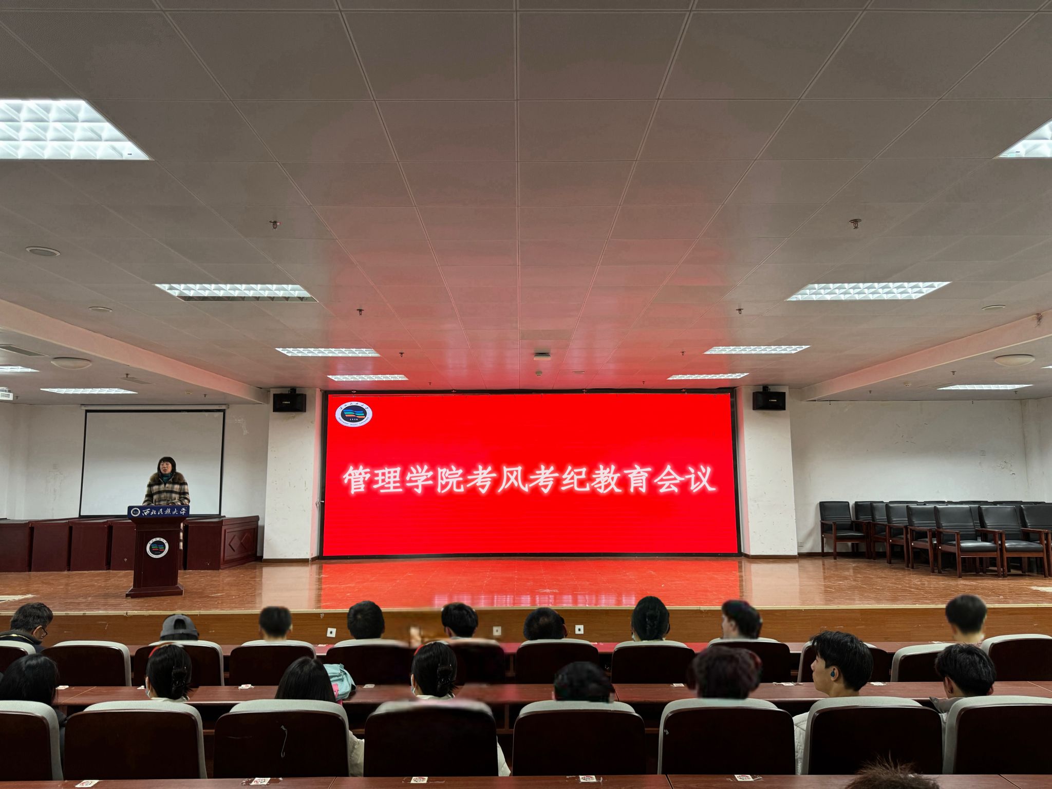 為加強考風考紀教育,樹立誠信學風,端正考試態度,以積極的心態迎接即將來臨的全國碩士研究生招生考試和期末考試,管理學院在榆中校區就業大廳召開考風考紀教育會議。學院負責人向黨、米爾古麗、丁玉芳出席,學生代表100余人參加。會議由學院黨委副書記、副院長米爾古麗主持。