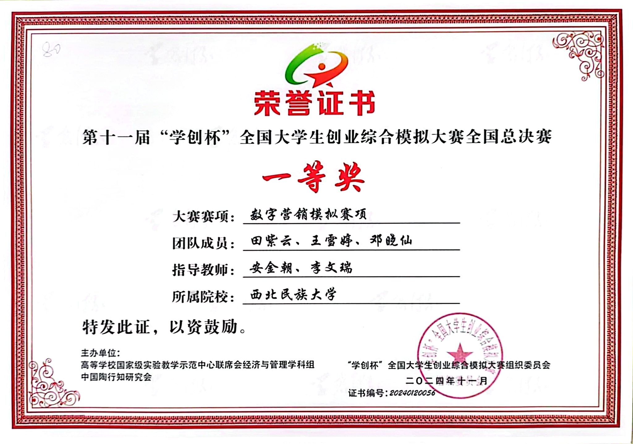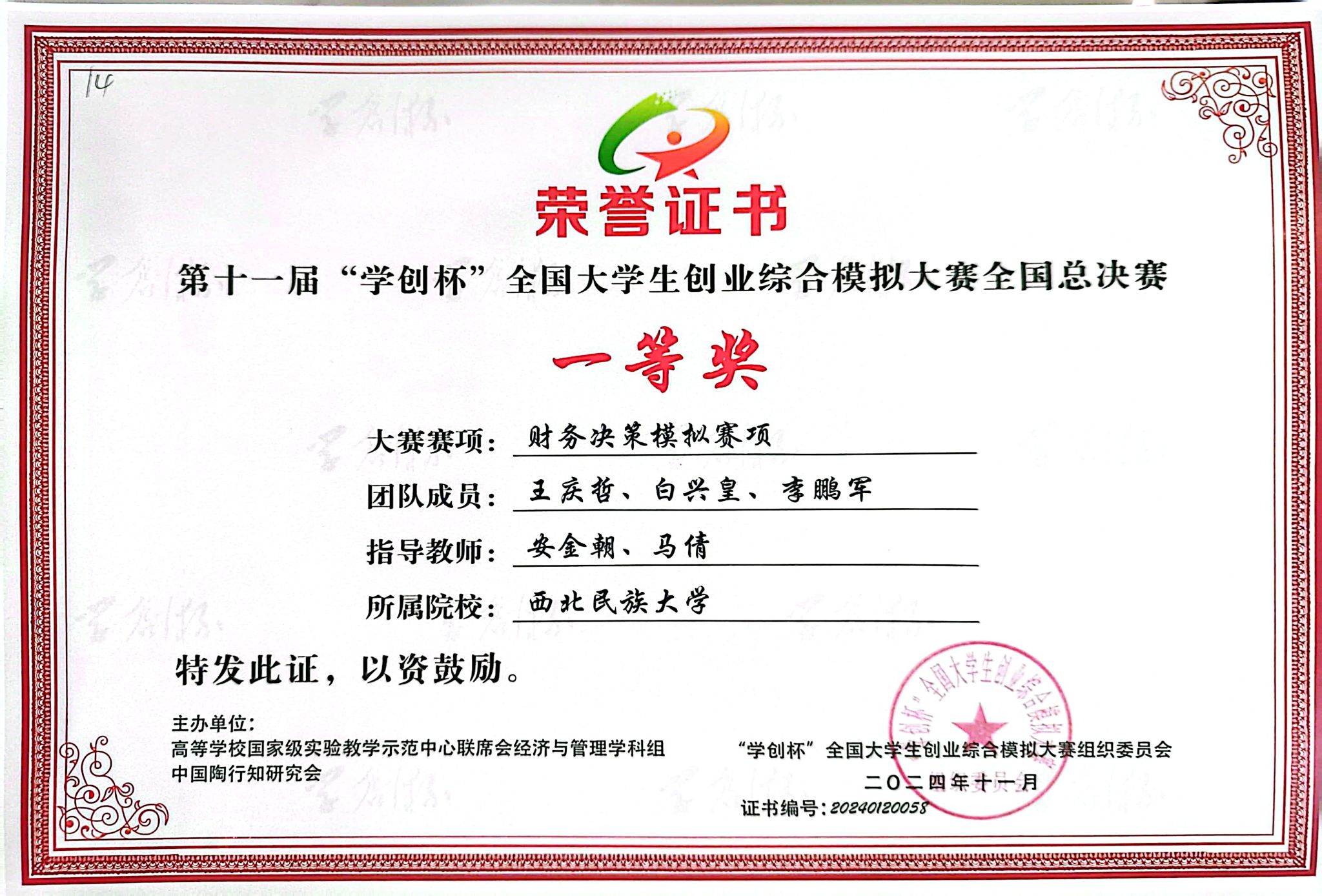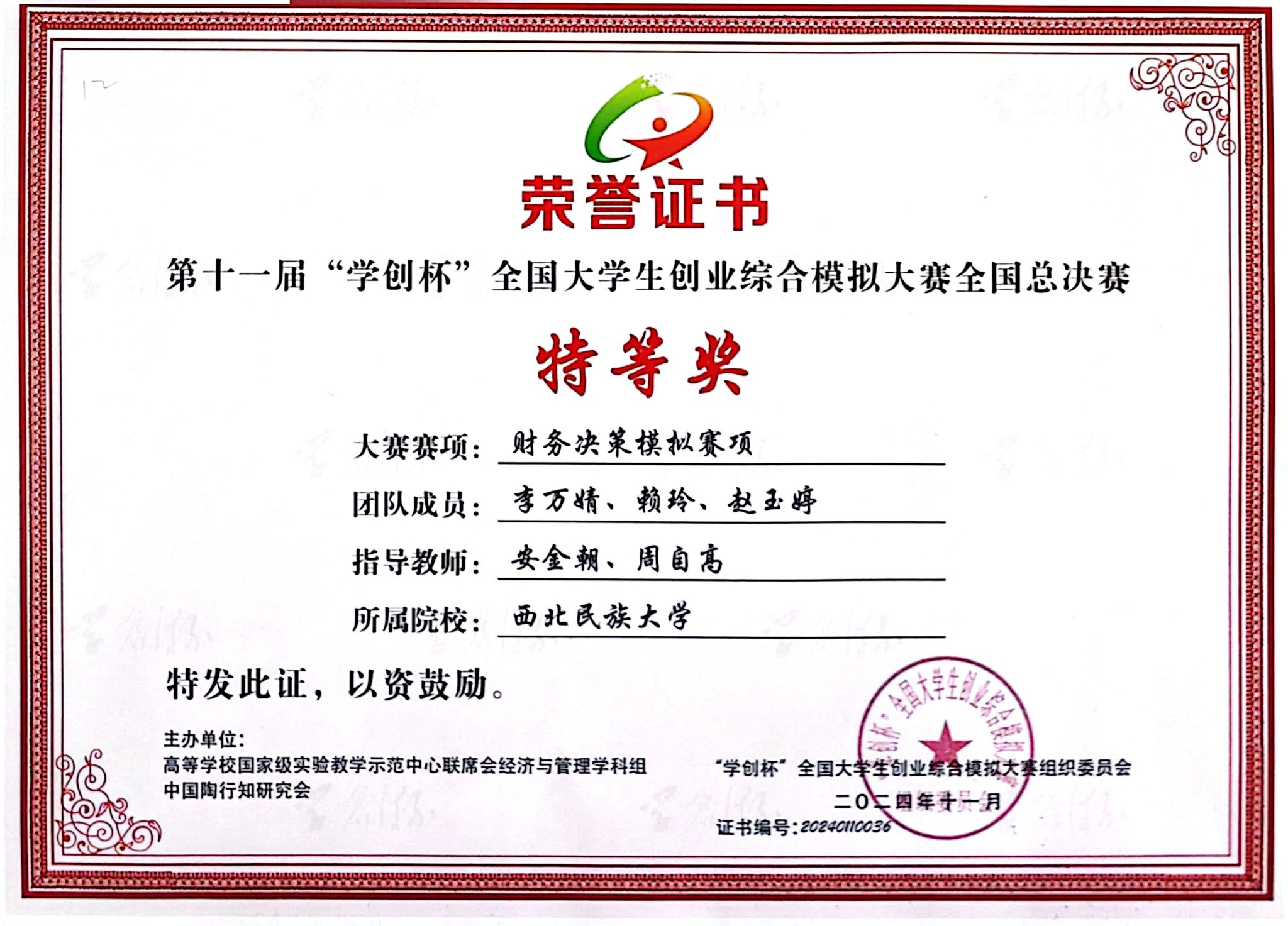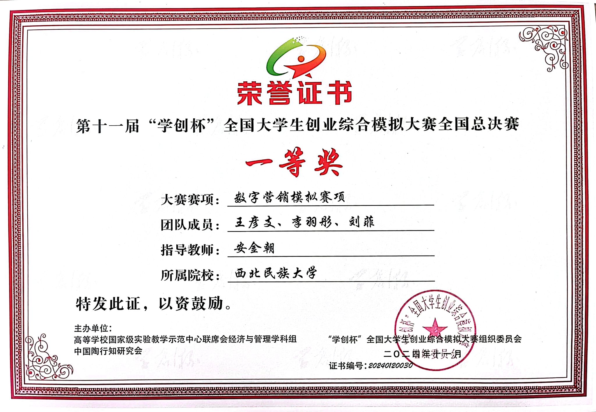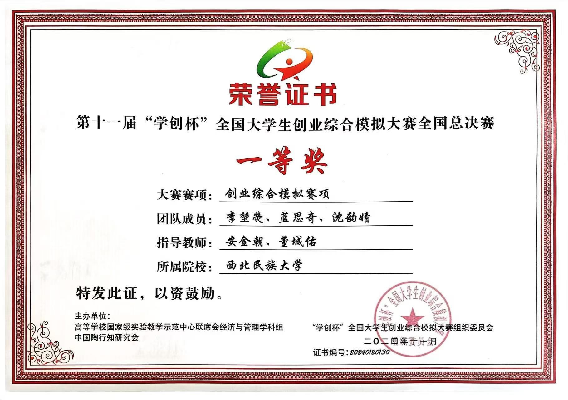“學創杯”全國大學生創業綜合模擬大賽由中國高等教育學會指導,高等學校國家級實驗教學示范中心聯席會、中國陶行知研究會主辦,系“全國普通高校大學生競賽排行榜”賽事,入選高等教育學會《全國普通高校大學生競賽分析報告》競賽目錄,是教育部認可的84項全國大學生學科競賽(A類競賽名單)之一,是衡量高校創新創業教育成效的重要指標性學科競賽之一。本屆大賽分創業綜合模擬賽項、數字營銷模擬賽項、財務決策模擬三賽項,自啟動以來,共有來自武漢大學、中山大學、吉林大學、重慶大學等1500余所高校的12萬支團隊參賽。西北民族大學代表隊在指導教師精心培訓下,踐行“以賽促學、以賽促教、以賽促創”理念,經過刻苦訓練,通過校賽、省賽、全國半決賽層層選拔,最終在全國總決賽綻放光彩。
