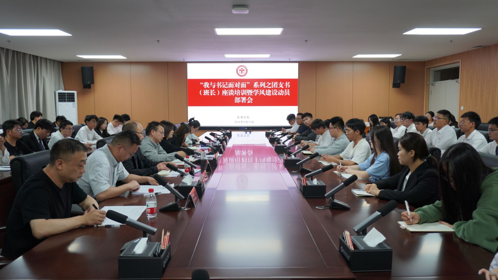 9月23日,管理學院在躬行樓舉辦“我與書記面對面”系列之團支書(班長)座談培訓暨學風建設動員部署會,院領導向黨、米爾古麗、謝宗棠出席,學院51個行政班的團支書(班長)參加。會議由學院團委書記周自高主持。