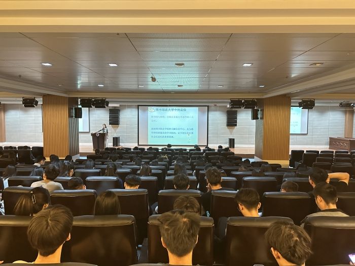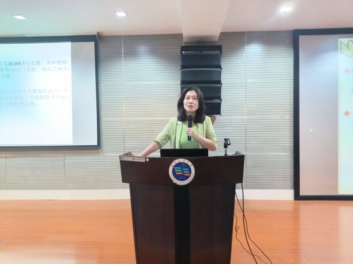 培訓中,受邀老師介紹了學校圖書館概況,重點講解了館藏圖書借還流程以及相關服務項目,演示了圖書館的文獻資源分類和文獻資源檢索系統,并表示圖書館是學校的文獻信息中心,是為教學、科研服務的學術機構,是學校信息化、社會信息化的重要陣地。倡導全體新同學遵守文明公約,鼓勵大家走進圖書館,充分利用圖書資源,把圖書館作為追求個人全面發展的重要場所,努力提升能力素養。