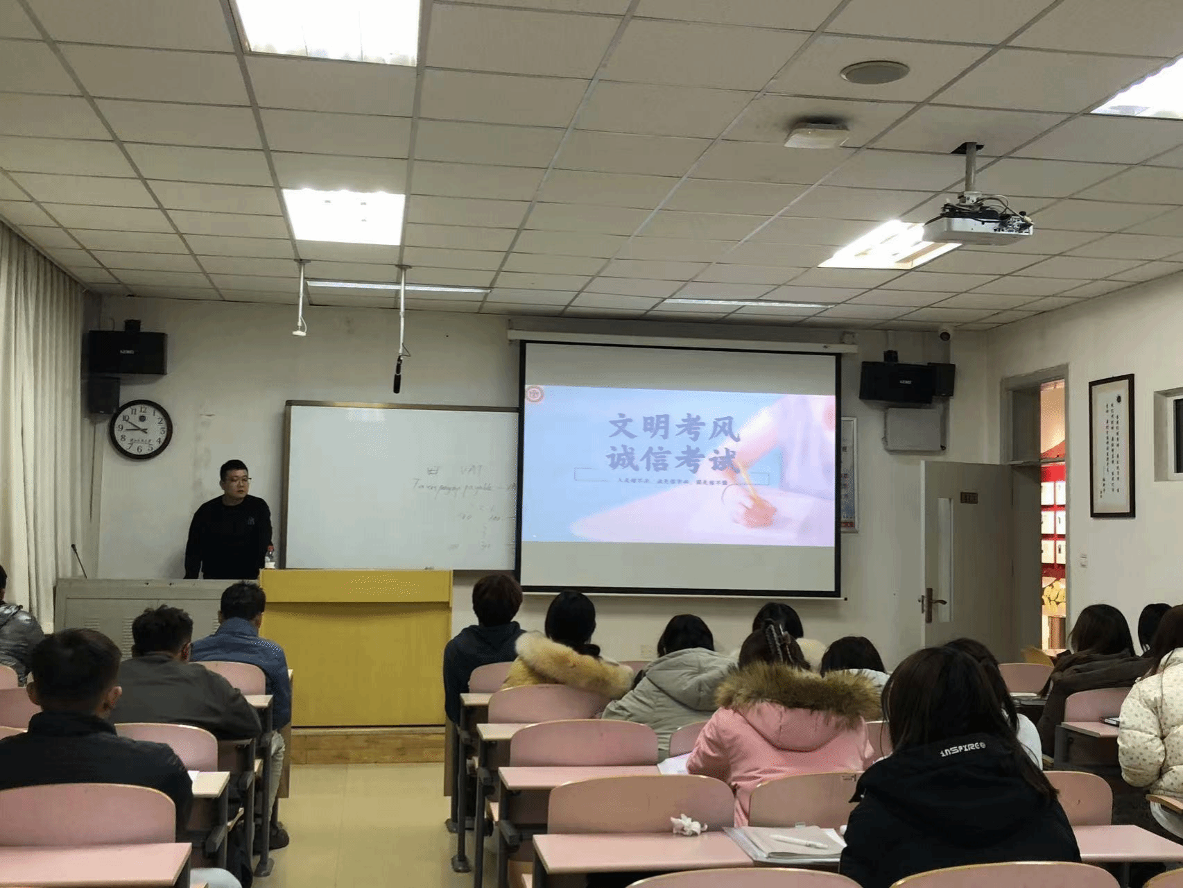 臨近期末,為引導同學們樹立良好考風,誠信對待考試,拒絕考試焦慮,營造公平公正的考試環境,近日管理學院以班級為單位召開了以“誠信考試,拒絕焦慮”為主題的考試誠信教育班會。
