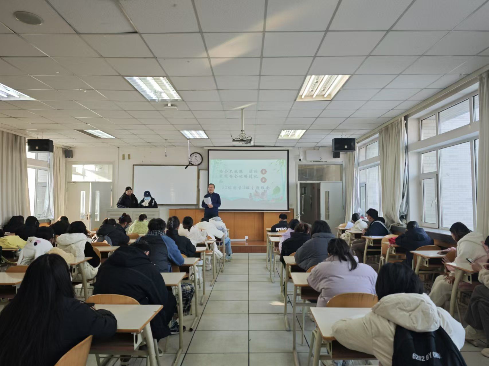 為扎實(shí)推進(jìn)假期安全工作開展,引導(dǎo)學(xué)生安全文明離校,有效防范各類安全事故的發(fā)生,近期,管理學(xué)院召開寒假安全教育主題班會。
