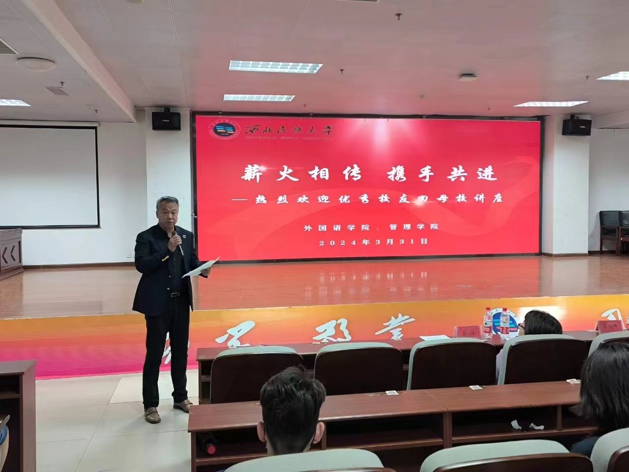 拳拳赤子心,濃濃母校情。3月31日,管理學院、外國語學院舉辦“薪火相傳,攜手共進——優(yōu)秀校友回母校”活動,邀請原經管學院1996級工商管理班學子、現(xiàn)湖南工業(yè)大學電氣與信息工程學院黨委書記陳治國作就業(yè)專題講座。學校校友聯(lián)絡辦公室副主任楊俊、外國語學院黨委副書記馬佳、管理學院副院長馬明輝等出席,200余名師生現(xiàn)場聆聽講座。