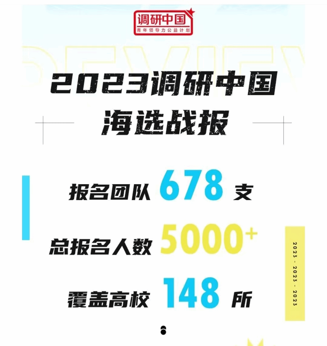 “調研中國”活動是由《南風窗》雜志社主辦。活動的宗旨是讓當代大學生關注社會民生,探悉社會機理,在實踐中學習,在實踐中成長。通過提供資金和專業訓練,支持在校大學生進行田野調查和社會實踐。經過多年發展,“調研中國”吸引了各類志同道合的機構和組織參與,在合作伙伴的支持下,項目涵蓋大陸與港澳臺高校,已經成長為中國大學校園中最具影響力的田野調查支持平臺。而在今年,“調研中國”更是吸引了678支隊伍報名。經過嚴格篩選,激烈角逐,最終僅有100支優秀隊伍入圍,晉級到下一輪比賽。