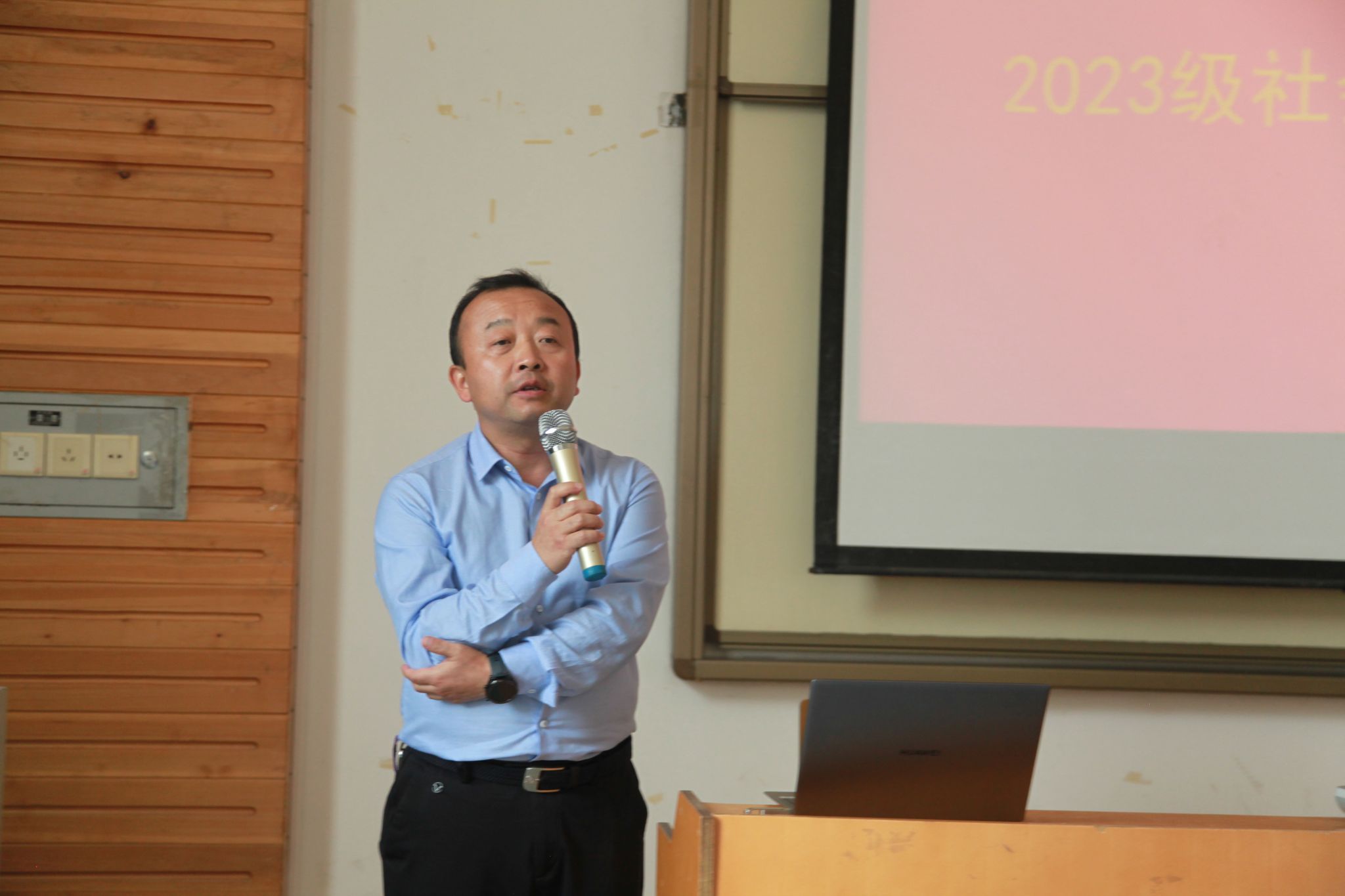 會議中,院長賀衛光介紹了學院專業特色優勢,強調了同學們在專業學習上應腳踏實地,擅用田野方法,在實踐中提升與他人溝通交流的能力。