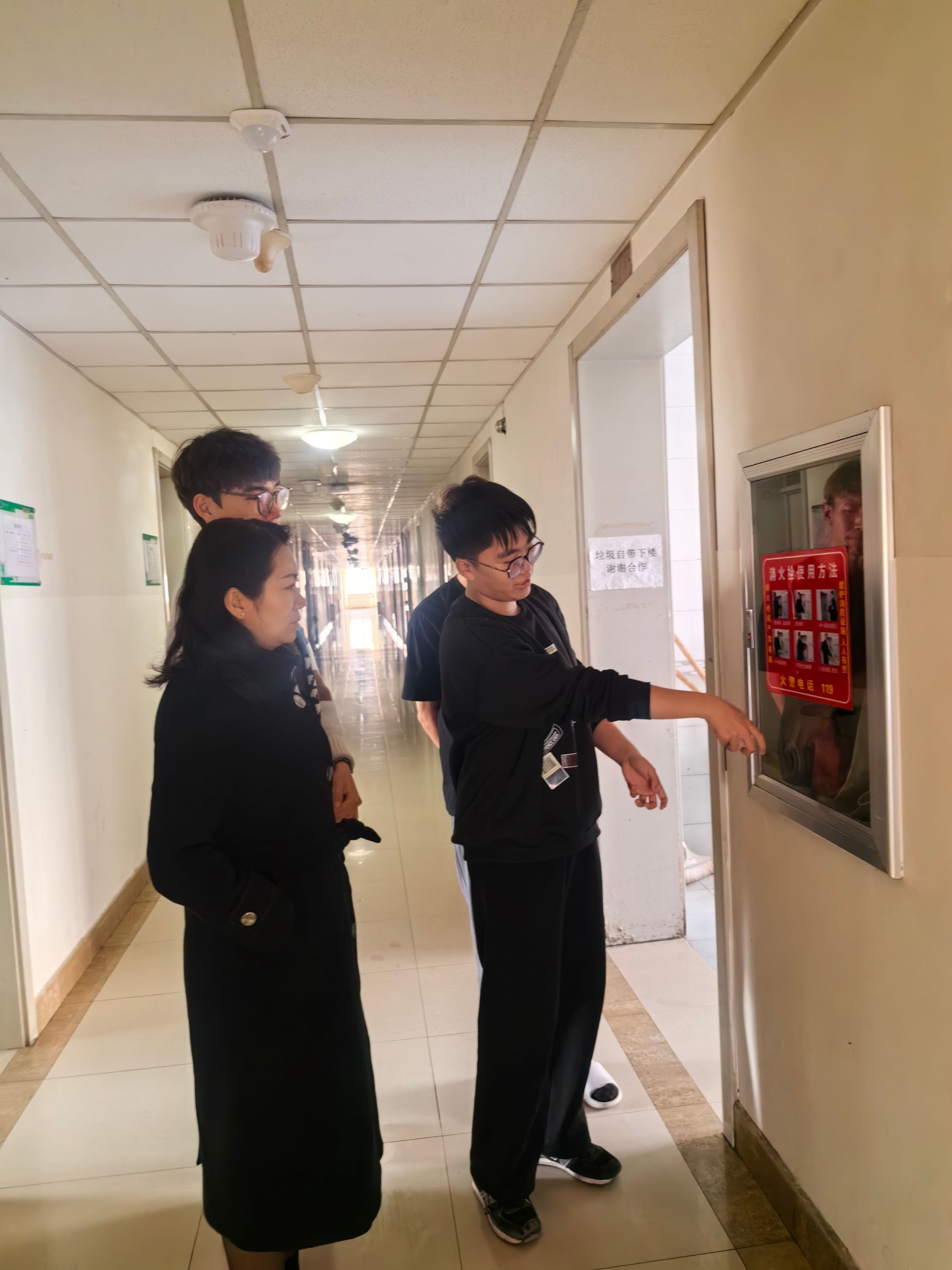 近日,我院開展學生公寓消防安全大檢查,消除消防安全隱患、宣傳消防安全知識,提高大學生消防安全意識。