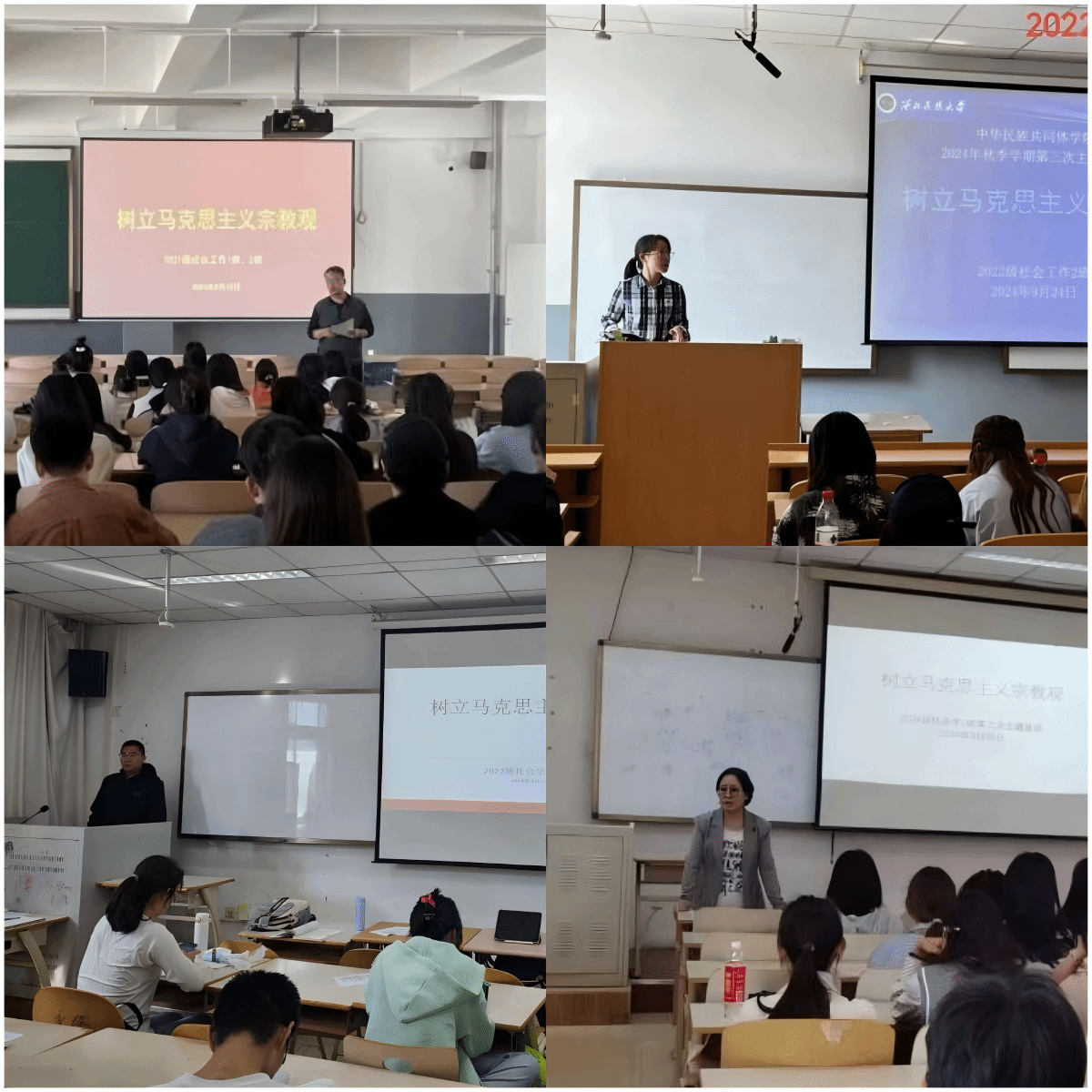 第五周,班會(huì)聚焦“樹立馬克思主義宗教觀”。通過(guò)學(xué)習(xí)馬克思主義宗教觀的基本觀點(diǎn)、防止宗教向教育領(lǐng)域滲透的“兩個(gè)不得”“五個(gè)嚴(yán)禁”等內(nèi)容,同學(xué)們對(duì)馬克思主義宗教觀有了更深刻的理解,認(rèn)識(shí)到宗教與社會(huì)主義社會(huì)相適應(yīng)的重要性。期間,班導(dǎo)師領(lǐng)學(xué)《西北民族大學(xué)學(xué)生違紀(jì)處理辦法》,引導(dǎo)同學(xué)們樹立馬克思主義宗教觀,大家廣泛參與和互動(dòng),立志將不斷學(xué)習(xí),充實(shí)自身,有效識(shí)別、自覺(jué)抵制宗教向校園滲透,踐行鑄牢中華民族共同體意識(shí),努力成長(zhǎng)為堪當(dāng)民族復(fù)興重任的時(shí)代新人。