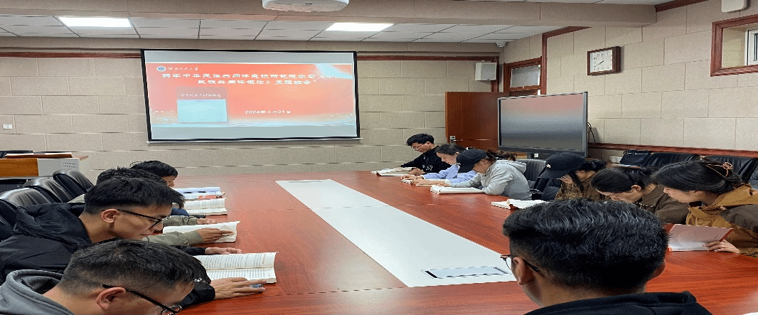 2024年3月21日晚,研究院組織開展學習《中華民族共同體概論》教材主題班會,全體碩士研究生參加,班會由班導師完得冷智主持召開。