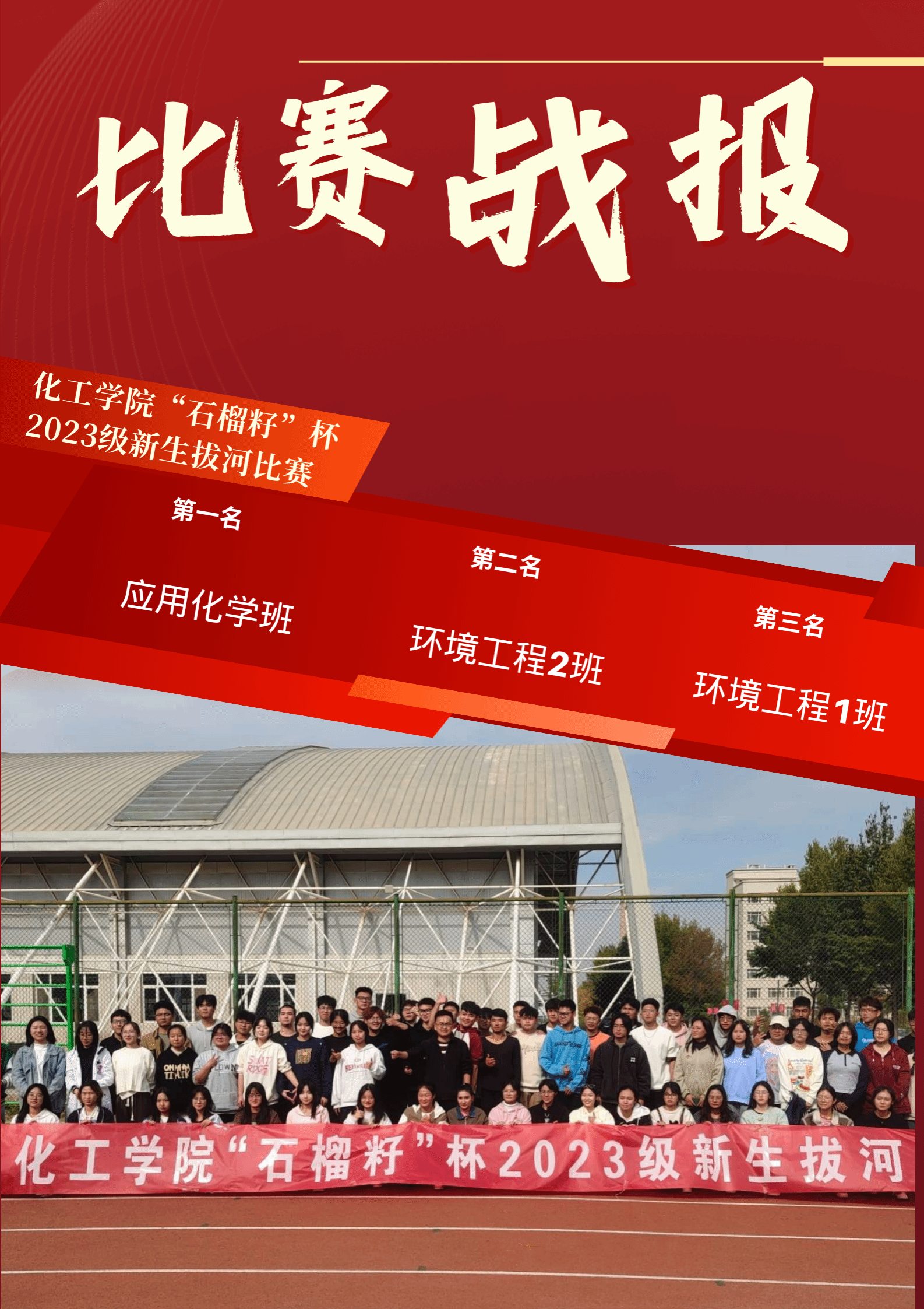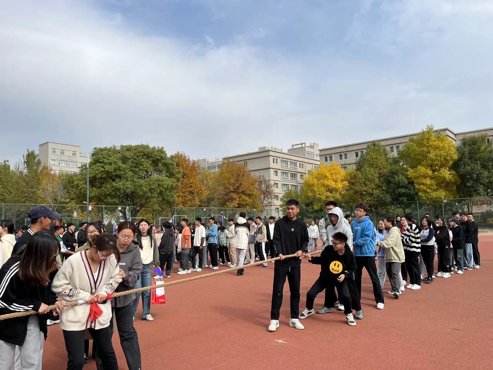 為進一步豐富校園文化生活,提升班級凝聚力,培養學生團結協作精神。10月25日中午,化工學院在民美體育場舉辦“石榴籽”杯2023級新生拔河比賽,2023級各班級學生300余人參加。