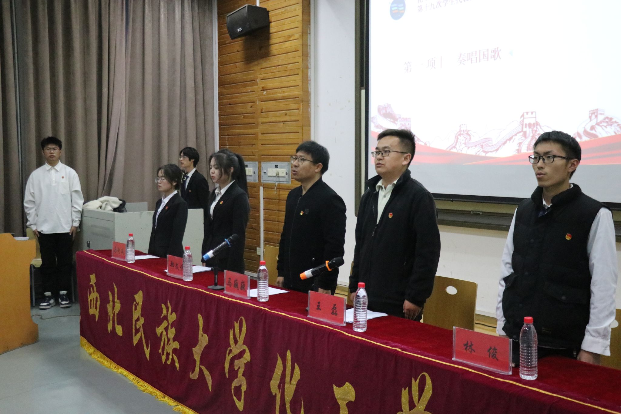 大會在莊嚴(yán)的國歌聲中拉開帷幕。