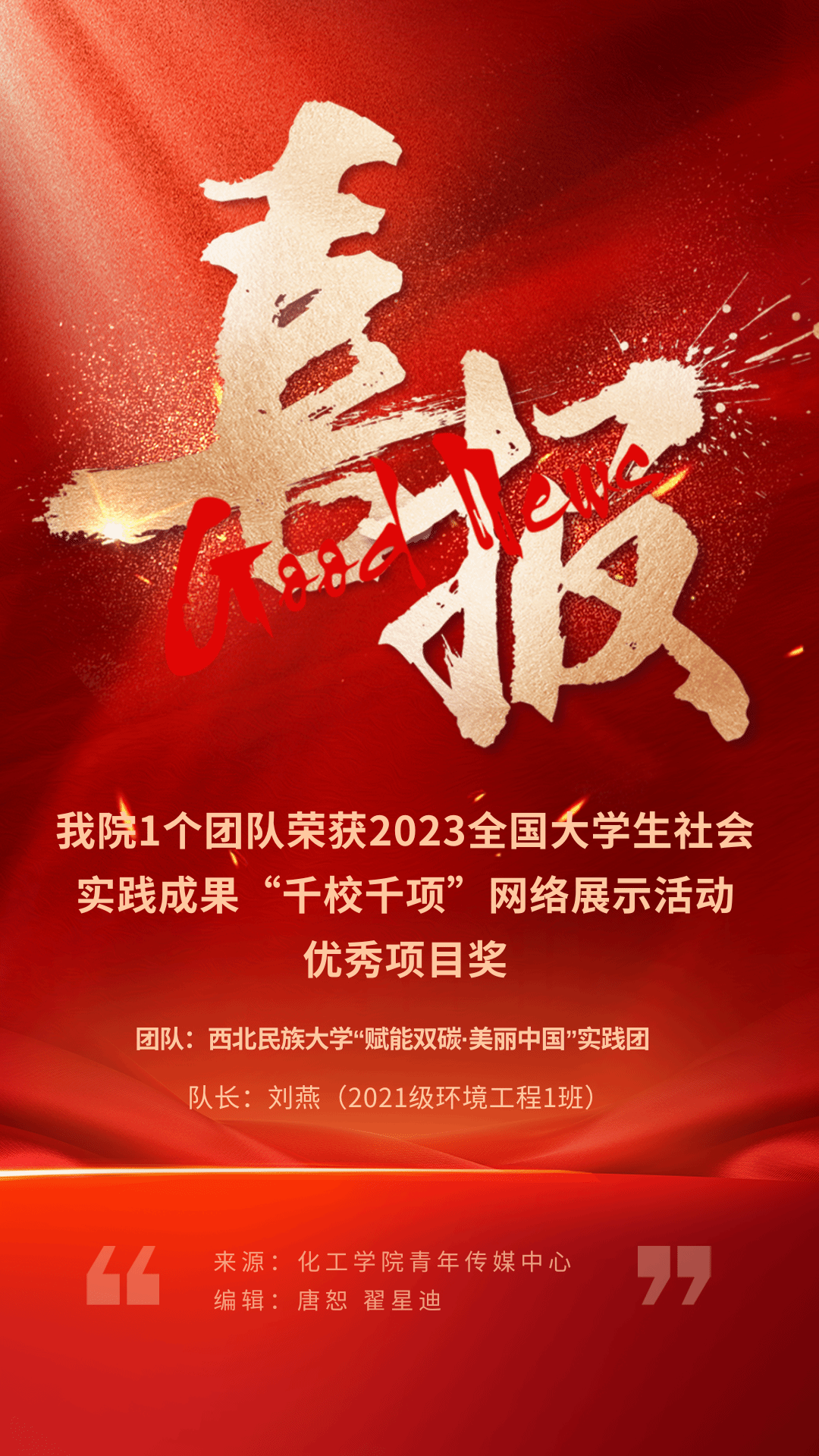 喜報!學院1個團隊榮獲2023全國大學生社會實踐成果“千校千項”網絡展示活動優秀項目獎