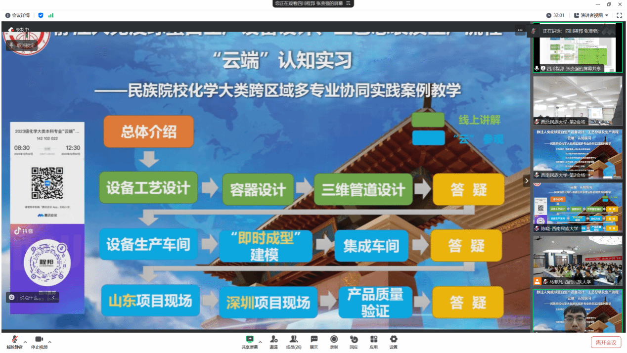 11月30日—12月2日,西北民族大學、西南民族大學,北方民族大學,湖北民族大學和阿壩師范學院五校聯合參加了由四川程邦制藥設備(工程)有限公司承辦的靜注人免疫球蛋白工藝設備設計及制造流程“云端”認知實習。