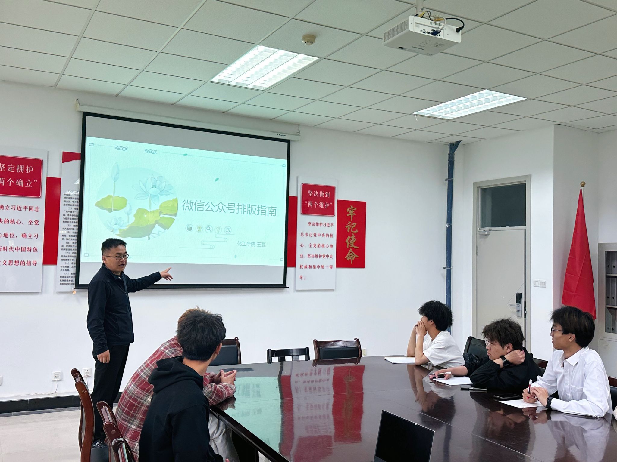 5月7日晚,化工學院在格物一號北樓309會議室召開學生宣傳骨干培訓會議,學院團委副書記王磊、團委宣傳部、青年傳媒中心學生骨干參加會議。