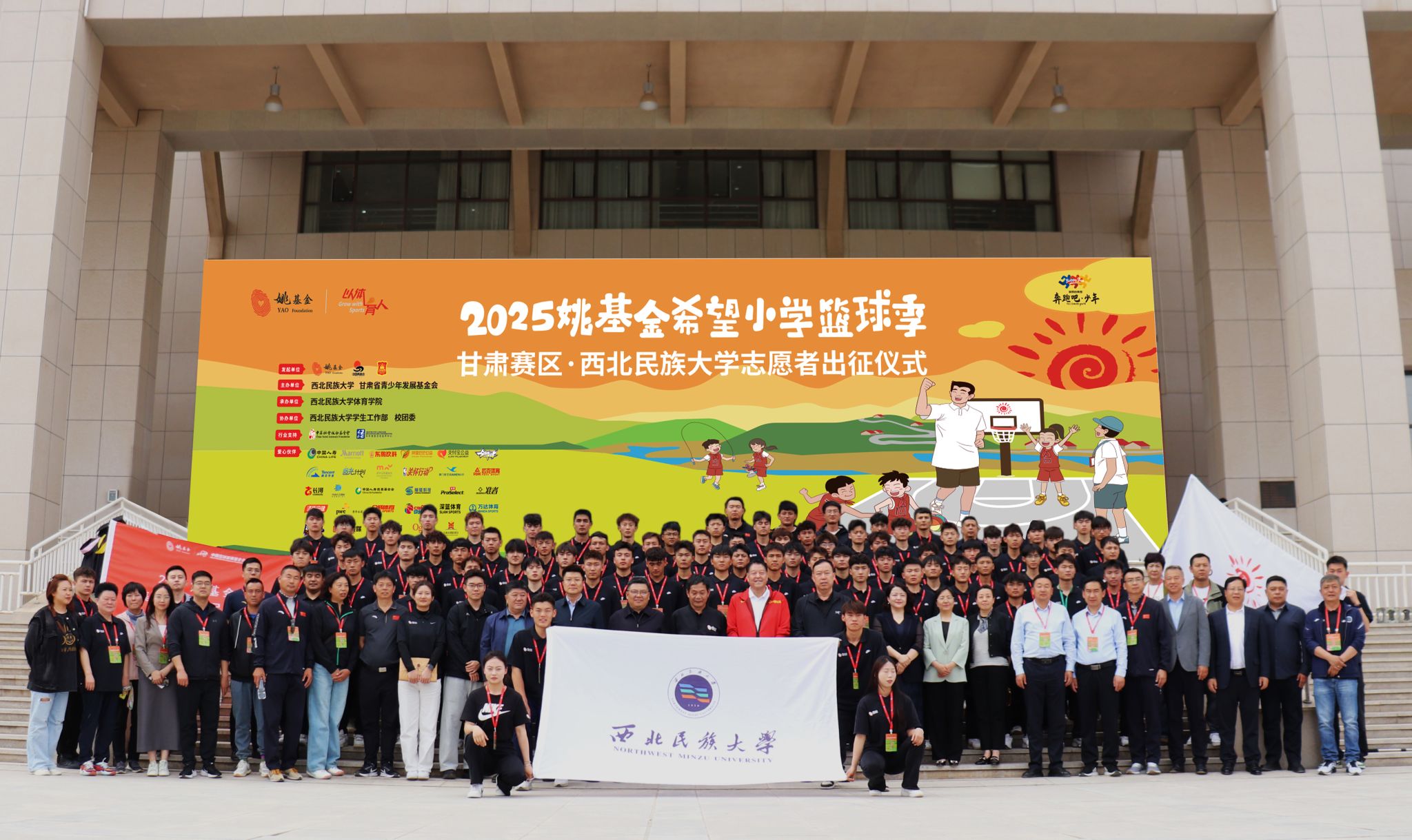 5月12日,2025年姚基金希望小學籃球季·美麗鄉村足球季西北民族大學支教志愿者出征儀式在學校榆中校區舉行。校黨委常委、副校長徐紹文北京姚基金公益基金會副理事長涂猛出席活動并致辭。甘肅省青少年發展基金會負責人、社會愛心人士、省屬院校、支教縣域相關人員及學校有關職能部門負責同志參加活動。