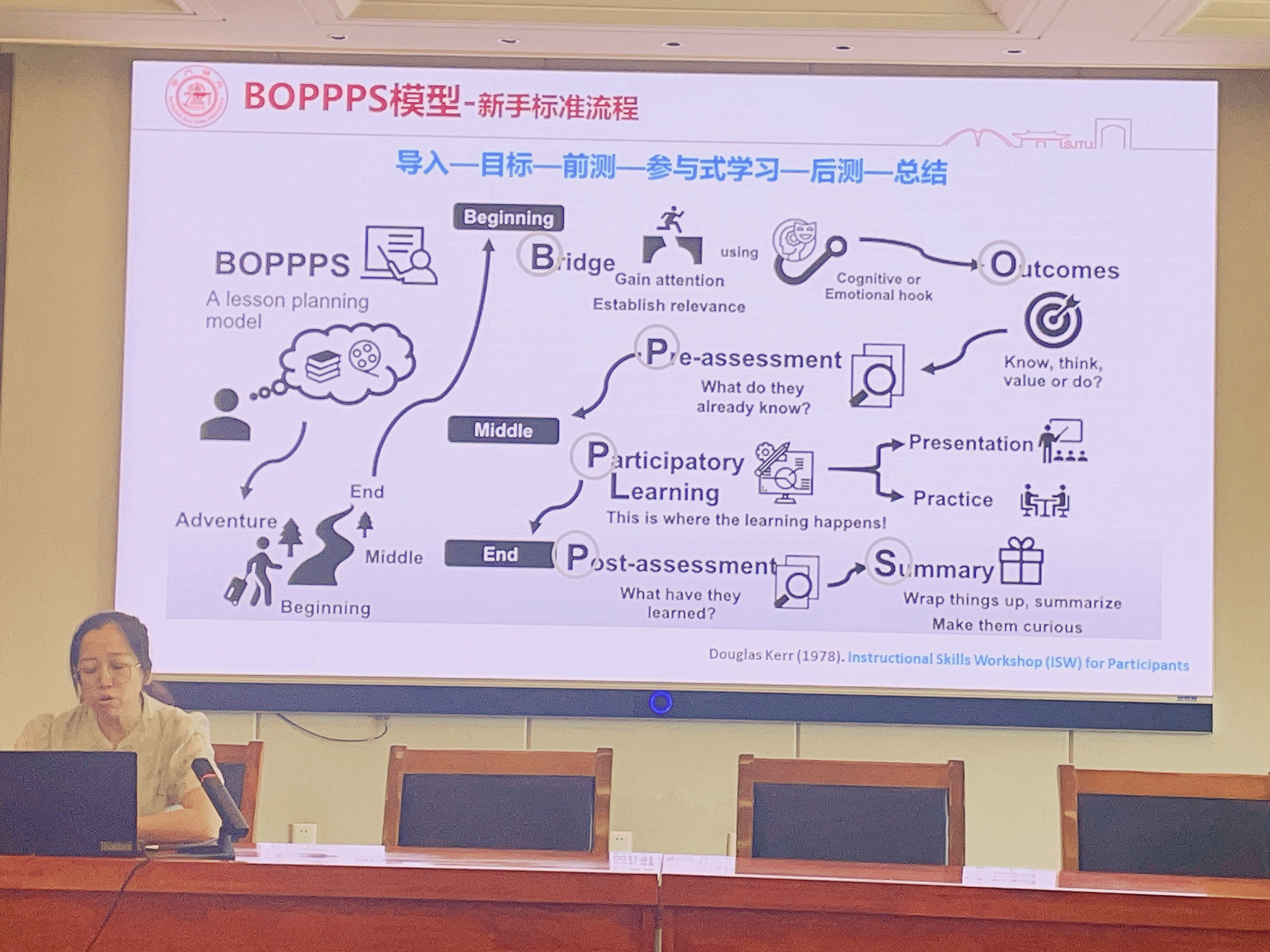 專業負責人張建深副教授和賀彩銀副教授結合自己參加學校審核評估專項培訓的心得體會,分享了數字素養核心要素、樹立課程思政核心理念、創新課程育人目標、掌握BOPPPS教學模型為基礎的教學設計等教學改革理念和方向。