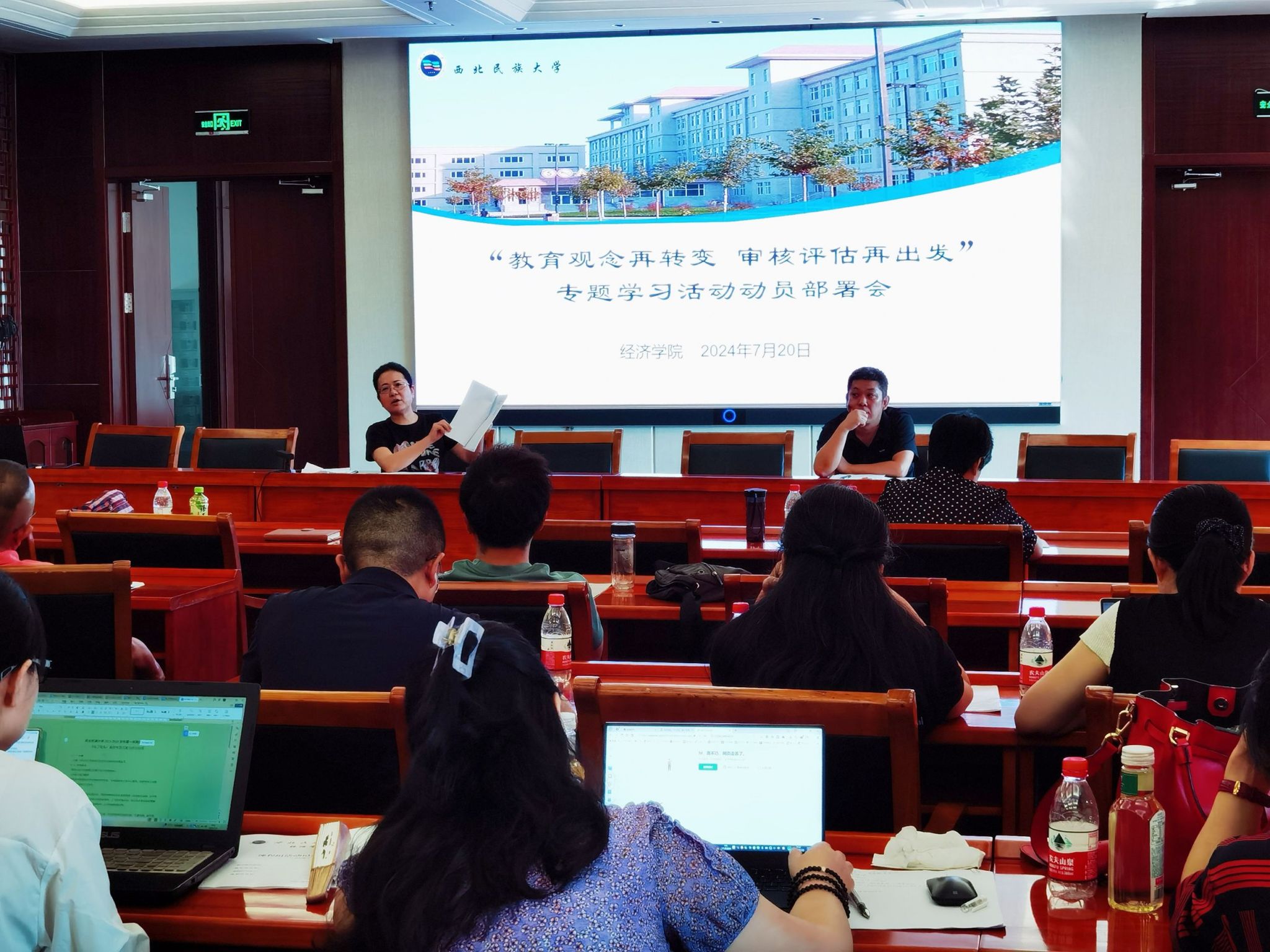 7月20日上午,經濟學院召開“教育觀念再轉變 審核評估再出發”專題學習交流會議,并對本科教育教學審核評估診斷性評估整改工作做進一步安排部署,切實開展暑期“教育教學大練兵”活動。院長王超教授主持會議,全體教師參會。