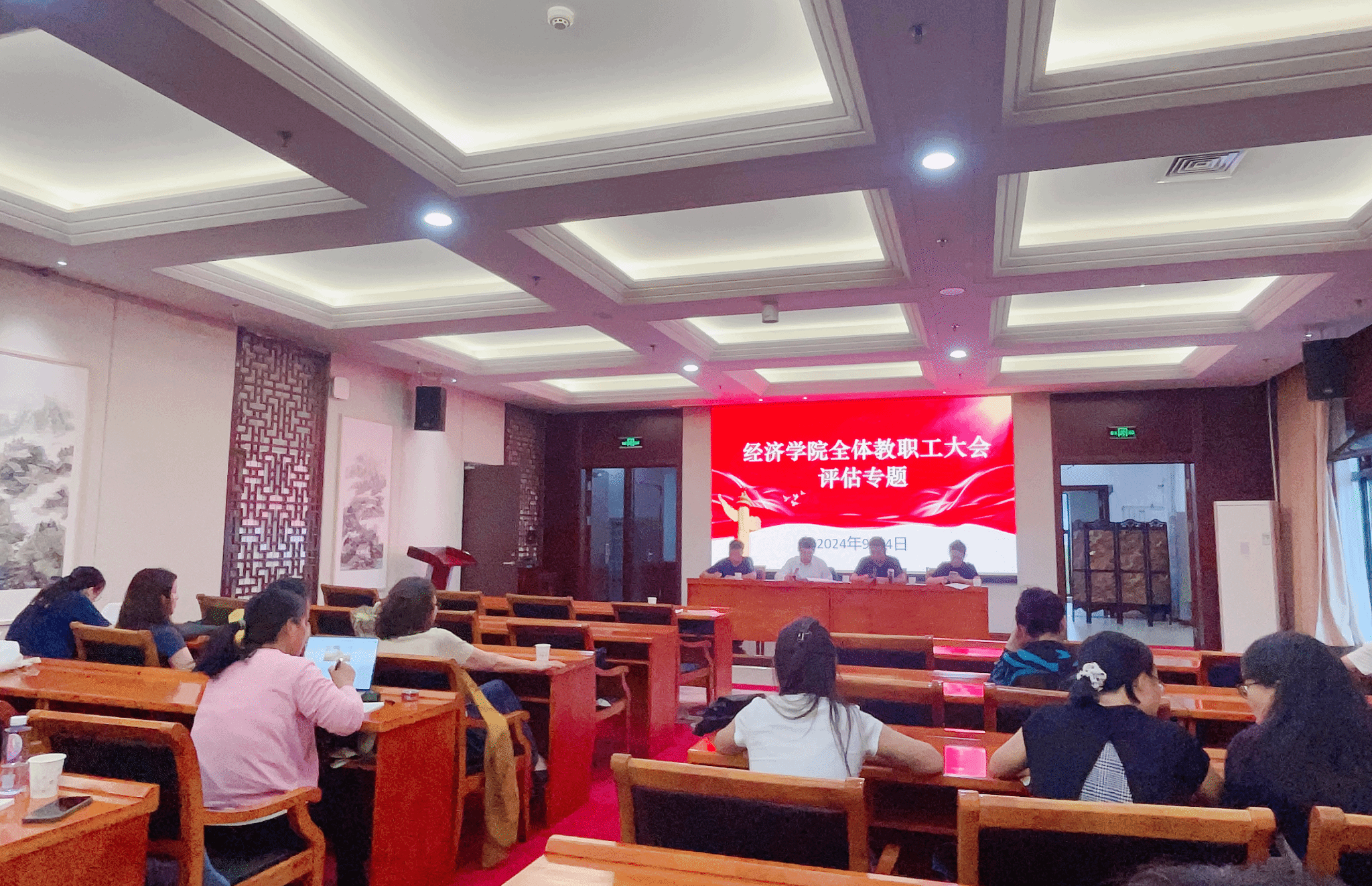 9月4日,經濟學院在校本部禮堂3樓會議室召開全體教職工大會暨本科教育教學審核評估推進會,學院領導、全體教職工參加了會議。