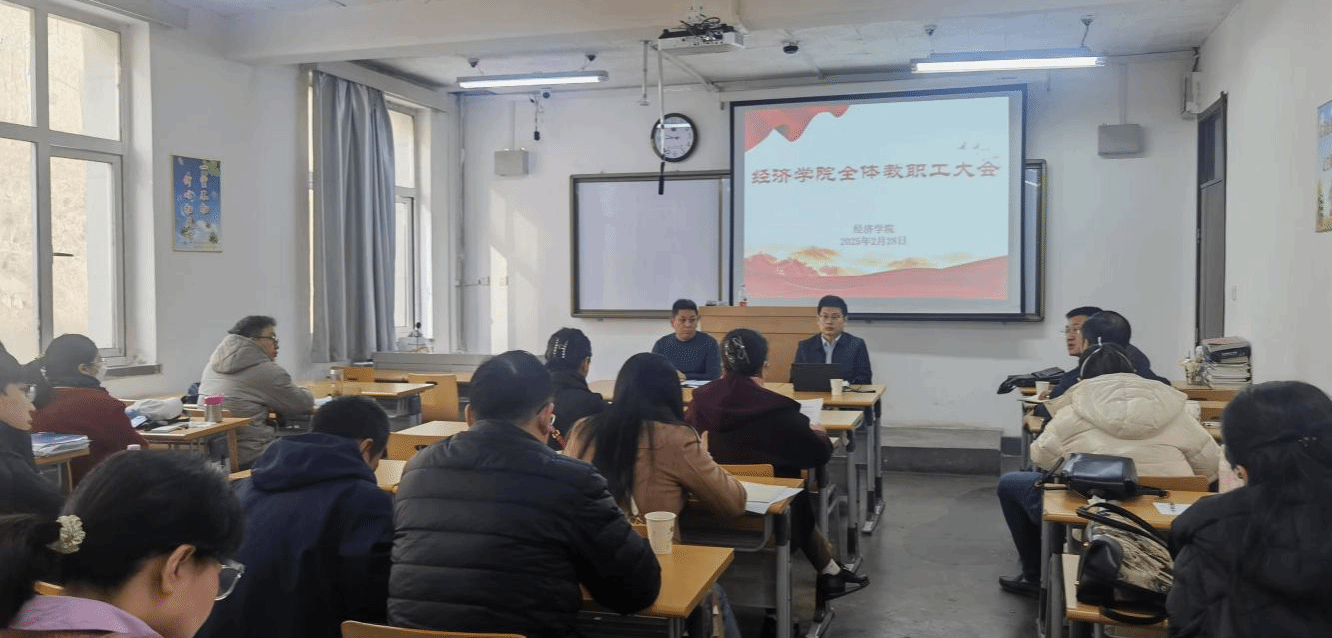 2月28日,經(jīng)濟學院在西北新村校區(qū)召開全體教職工大會,會議由經(jīng)濟學院黨委書記郝宇主持。