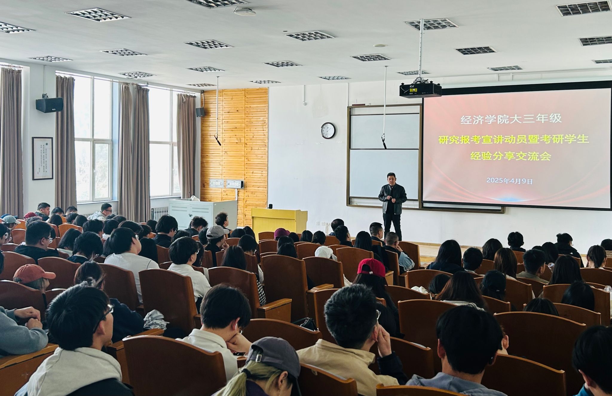 4月9日,經濟學院召開以研究生報考宣講動員和考研學生經驗分享為主題的學生年級大會。院長王超教授、副書記李博、副院長馬子量教授、輔導員馬永騰和2022級全體學生參加會議。