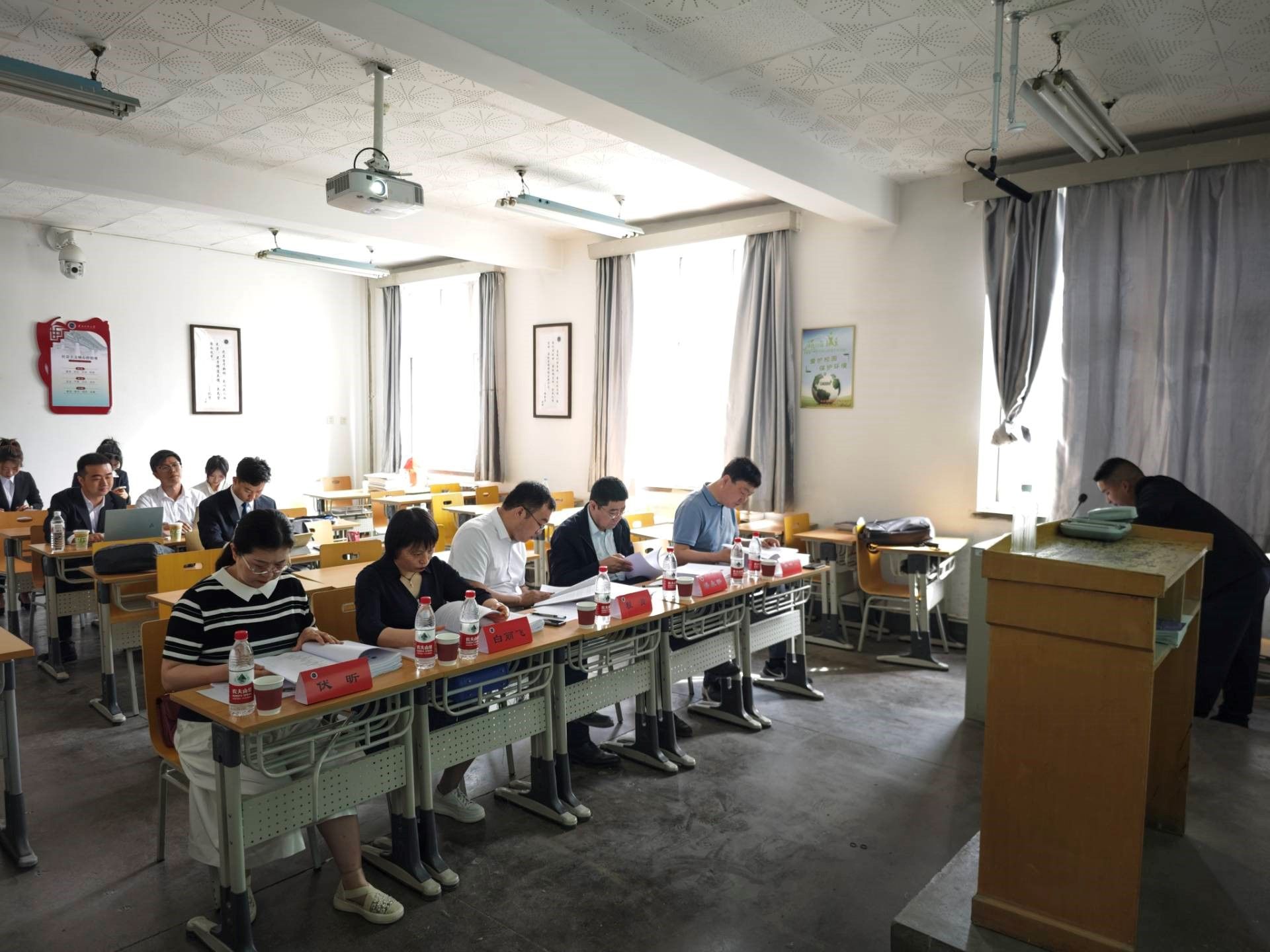 本次畢業(yè)論文答辯分三組同時進(jìn)行,共邀請到15位校外專家,其中答辯主席分別由蘭州大學(xué)汪曉文教授、蘭州財經(jīng)大學(xué)程貴教授和蘭州財經(jīng)大學(xué)馬潤平教授擔(dān)任,各組答辯委員分別由蘭州大學(xué)專家、蘭州財經(jīng)大學(xué)專家以及行業(yè)專家擔(dān)任,經(jīng)濟(jì)學(xué)院金融碩士專業(yè)學(xué)位、國際商務(wù)碩士專業(yè)學(xué)位全體研究生及部分導(dǎo)師全程旁聽了此次答辯。