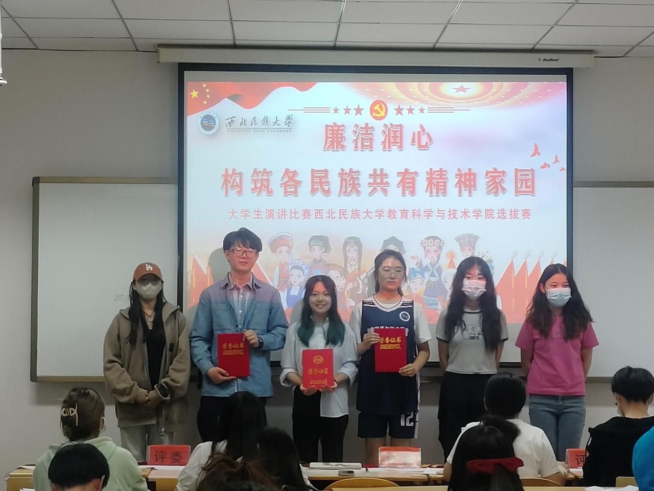 根據學校第十六屆黨風廉政宣傳月活動的安排,為弘揚新時代廉潔文化,有形有感有效鑄牢中華民族共同體意識,教育科學與技術學院于2023年5月16日晚在格物二號樓南樓308舉辦“廉潔潤心,構筑各民族共有精神家園”主題演講比賽選拔賽。學院輔導員、學生代表擔任評委。