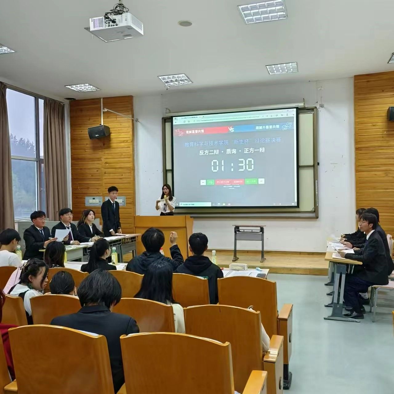 2023年5月20日晚,教育科學(xué)與技術(shù)學(xué)院辯論隊(duì)在致真樓104教室舉行了“學(xué)習(xí)二十大,奮進(jìn)新征程”主題辯論賽。比賽邀請(qǐng)了法學(xué)院、土木工程學(xué)院、新聞傳播學(xué)院及生命科學(xué)與工程學(xué)院的辯論隊(duì)隊(duì)長(zhǎng)作為評(píng)委,100余名學(xué)生觀看比賽。