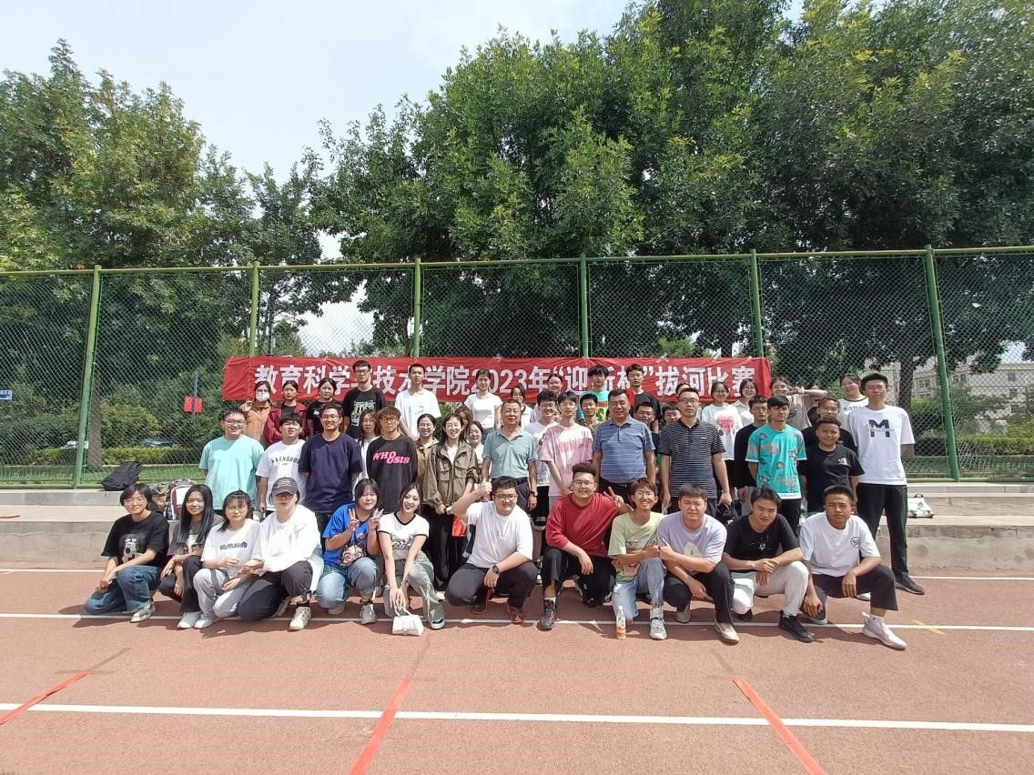 2023年9月11日中午,教育科學(xué)與技術(shù)學(xué)院在民美體育場(chǎng)舉辦2023年“迎新杯”拔河比賽。學(xué)院黨委書記久美道杰,黨委副書記、行政副院長(zhǎng)俞布仁,輔導(dǎo)員張鵬、高潔以及2023級(jí)全體同學(xué)參加活動(dòng)。