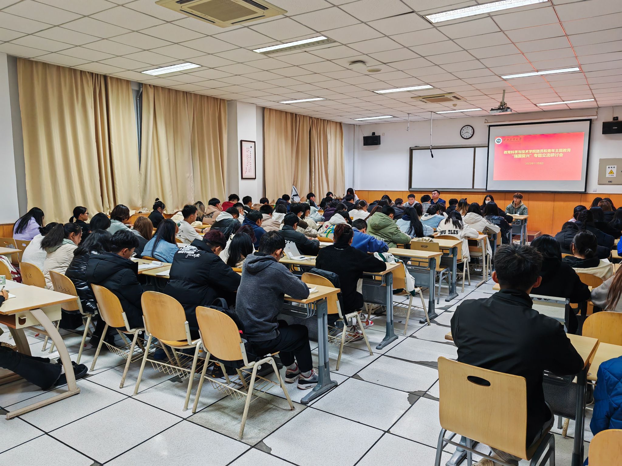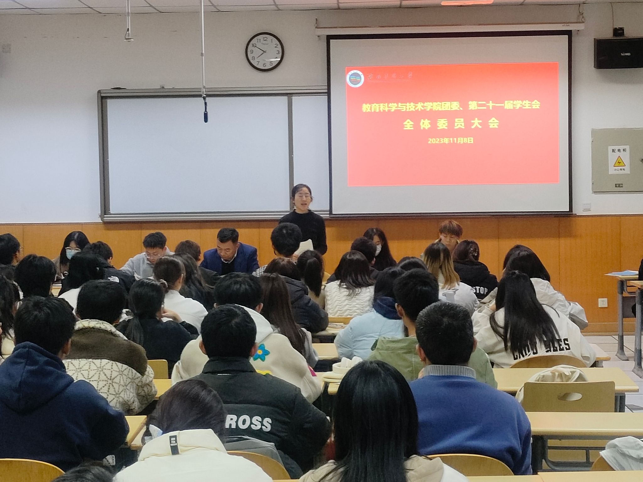 2023年11月8日,教育科學與技術學院團委、第二十一屆學生會在格物二號樓南樓109教室召開全體委員大會。學院黨委書記久美道杰,政治輔導員高潔,學院團委、學生會全體成員參加。會議由馬秀榮同學主持。