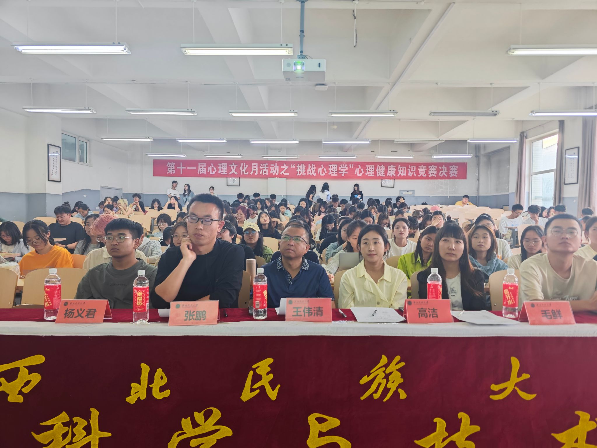為了引導(dǎo)大學(xué)生關(guān)注個(gè)體心理健康,營(yíng)造積極向上的心理文化氛圍,6月5日晚,西北民族大學(xué)第十一屆心理文化月系列活動(dòng)“挑戰(zhàn)心理學(xué)”心理健康知識(shí)競(jìng)賽決賽在榆中校區(qū)致真樓202教室圓滿(mǎn)結(jié)束。學(xué)院副處級(jí)組織員王偉清、綜合辦公室主任毛鮮、團(tuán)委書(shū)記高潔及政治輔導(dǎo)員張鵬擔(dān)任評(píng)委,各學(xué)院學(xué)生會(huì)主席、學(xué)院2023級(jí)本科生及高年級(jí)學(xué)生代表參加活動(dòng)。