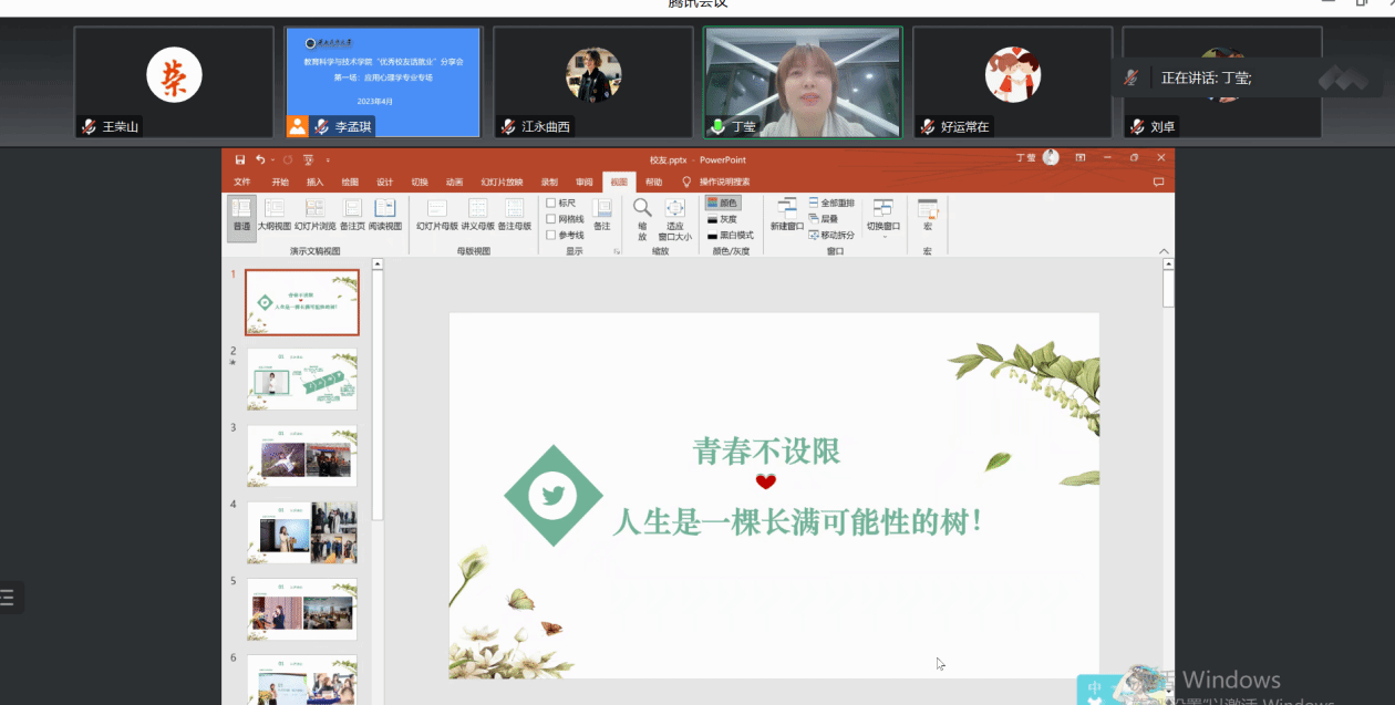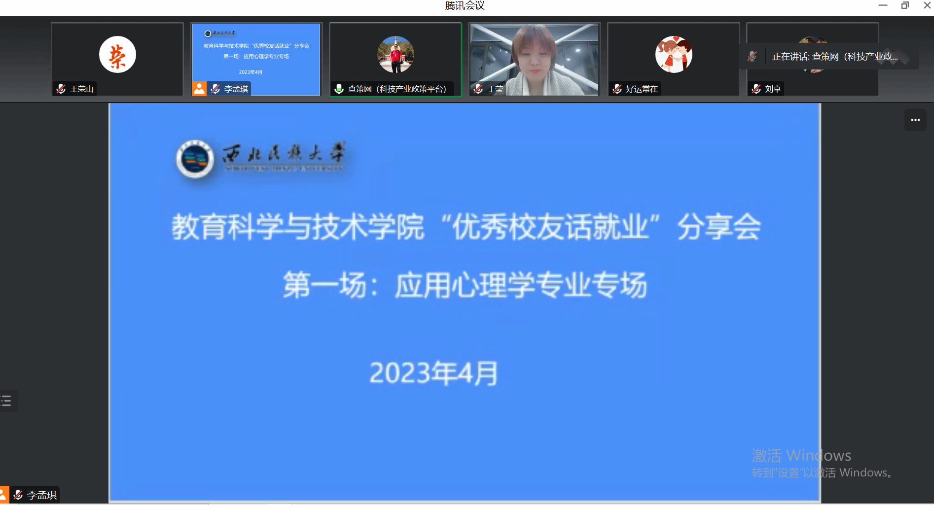 為進(jìn)一步促進(jìn)學(xué)院學(xué)生就業(yè)工作,教育引導(dǎo)學(xué)生樹立“先就業(yè)、后擇業(yè)、再立業(yè)”的就業(yè)觀念,2023年4月6日晚,教育科學(xué)與技術(shù)學(xué)院舉辦2023年第一場“優(yōu)秀校友話就業(yè)”分享會——應(yīng)用心理學(xué)專業(yè)專場。分享會以線上線下結(jié)合的方式進(jìn)行,相關(guān)專業(yè)老師,2023屆畢業(yè)生、應(yīng)用心理學(xué)專業(yè)學(xué)生共200余人參加。分享會由應(yīng)用心理學(xué)教研室主任王榮山主持。