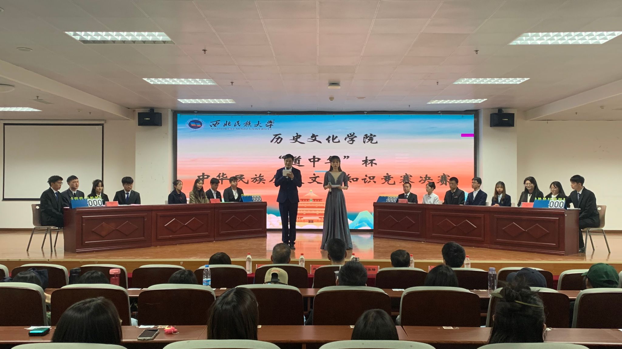 2023年4月16日晚上七點三十分,歷史文化學(xué)院“道中華”杯中華民族歷史知識競賽決賽在榆中校區(qū)就業(yè)大廳舉行。學(xué)院院長趙學(xué)東,副院長楊永鋒及牛海楨、李慧冬、丁曉東等師生300余人參加了此次活動。