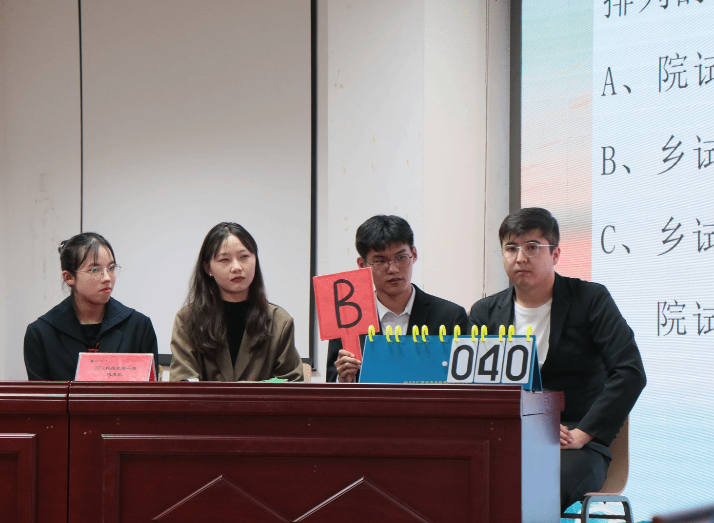 決賽一共分為四個部分,帷幄天樞、覽故經(jīng)言、高才疾足、卒間之竟,題型為選擇題、搶答題、問答題等,經(jīng)過四輪精彩的角逐,最終2022級歷史學(xué)1班獲得團(tuán)體一等獎;2022級文物與博物館學(xué)班獲得團(tuán)體二等獎的;2020級歷史學(xué)1班獲得團(tuán)體三等獎;2021級歷史學(xué)1班獲得優(yōu)秀團(tuán)體獎;2021級歷史學(xué)1班的楊芳鈺同學(xué)獲得優(yōu)秀個人獎。