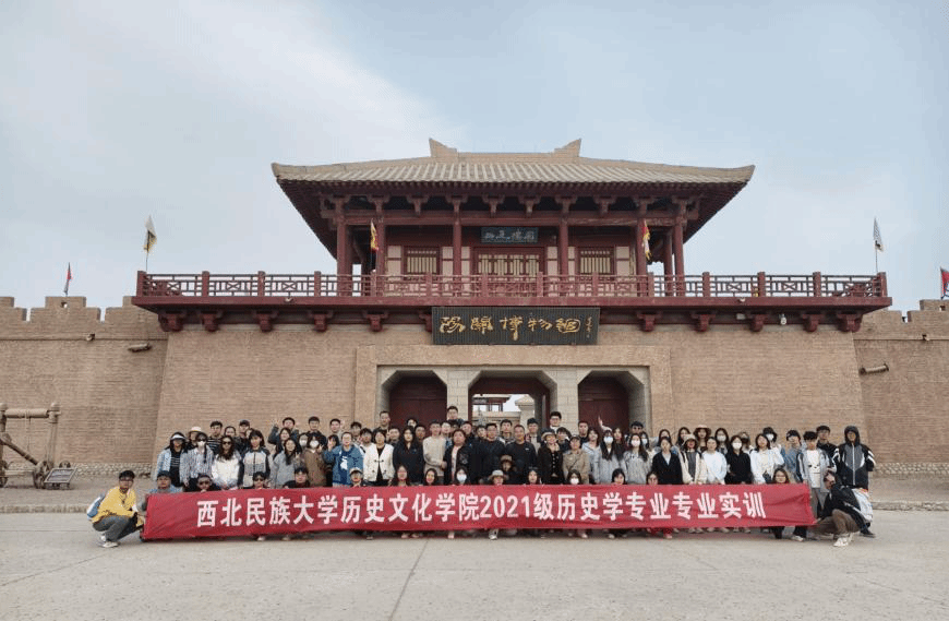 2021級(jí)歷史學(xué)專(zhuān)業(yè)實(shí)訓(xùn)小隊(duì)在陽(yáng)關(guān)博物館前合影留念