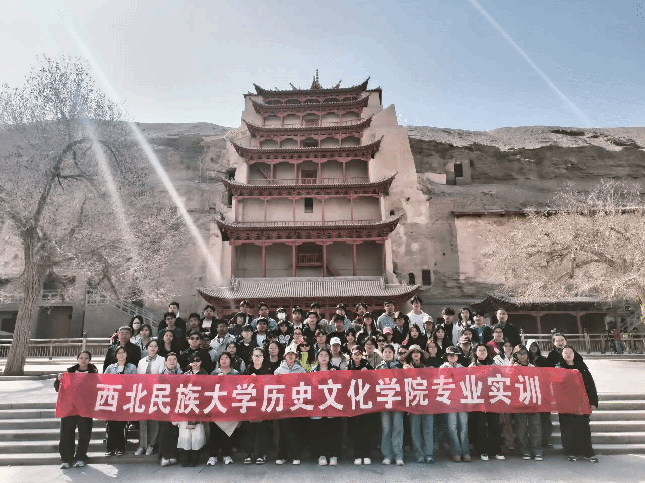 3月21日至25日,在學院黨委副書記王振忠帶領下,歷史文化學院2022級文物與博物館學、文物保護技術專業80余學生赴敦煌開展為期一周的專業實訓。此次專業實訓串聯敦煌市博物館、陽關、玉門關、榆林窟、懸泉置、莫高窟等六處線性遺址和文物點,開展系統性實踐學習。通過“理論學習—博物館觀摩—遺址參觀—組隊研討”的四維培養鏈,構建起覆蓋理論與實踐、室內博物館與戈壁遺址緊密結合的沉浸式實訓矩陣。