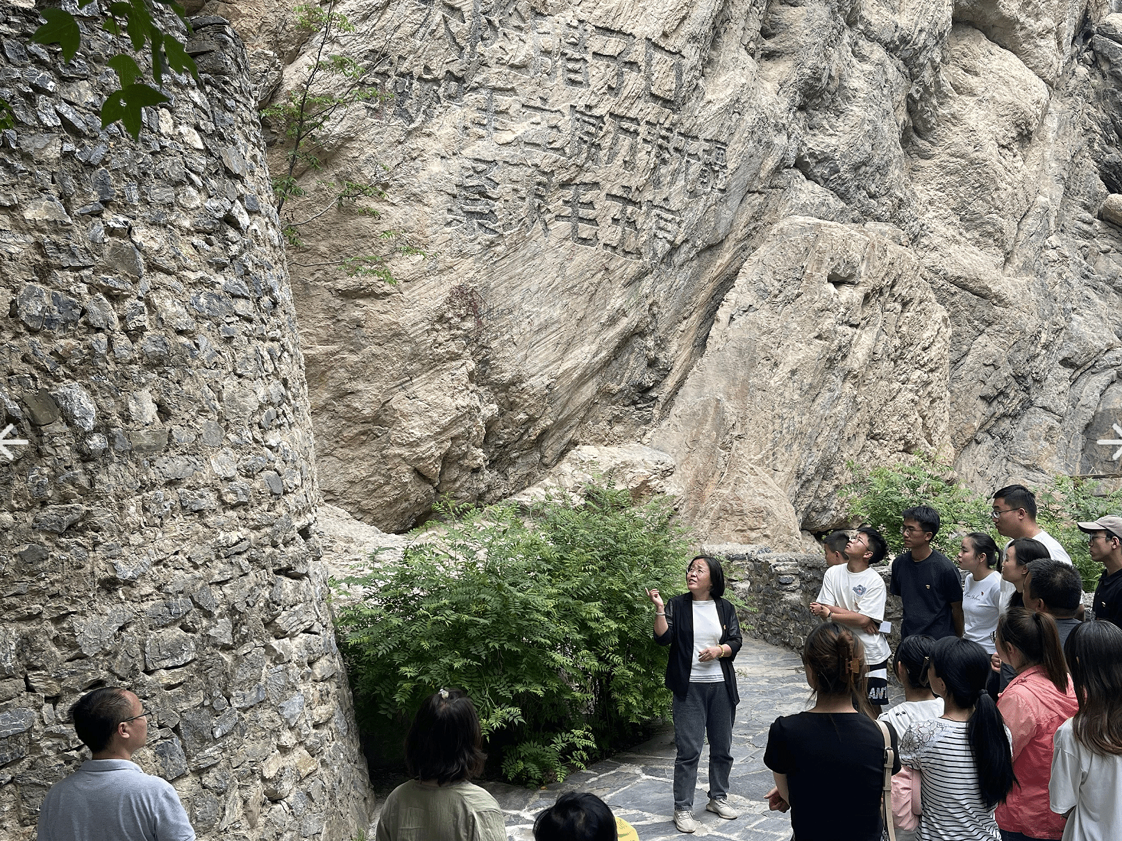 臘子口是四川通往甘肅的必經(jīng)之路。1935年長征途中,面對前堵后圍的困境,紅軍戰(zhàn)士們歷經(jīng)艱險,最終奪取臘子口,打開了長征北上的通道。全體黨員來到臘子口紀(jì)念碑處置身其中地感受紅軍取得臘子口戰(zhàn)役勝利的艱難與不易,愿犧牲在此的紅軍戰(zhàn)士英魂長存、精神常駐。大家沿著石刻長廊緩緩而行,夏春峰老師圍繞紅軍長征的重要節(jié)點,兩河口會議、俄界會議等,邊走邊講,為全體黨員生動地梳理了紅軍來到哈達(dá)鋪、臘子口的長征歷程,重溫了革命先輩一往無前、決戰(zhàn)決勝的堅定信念和崇高精神。當(dāng)走到一處碉堡時,王桂蓮老師為大家詳細(xì)地講述了“云貴川”小戰(zhàn)士舍身炸碉堡的事際,并結(jié)合奪取臘子口戰(zhàn)役勝利的過程,為全體黨員上了一節(jié)詳實、鮮活的黨課。